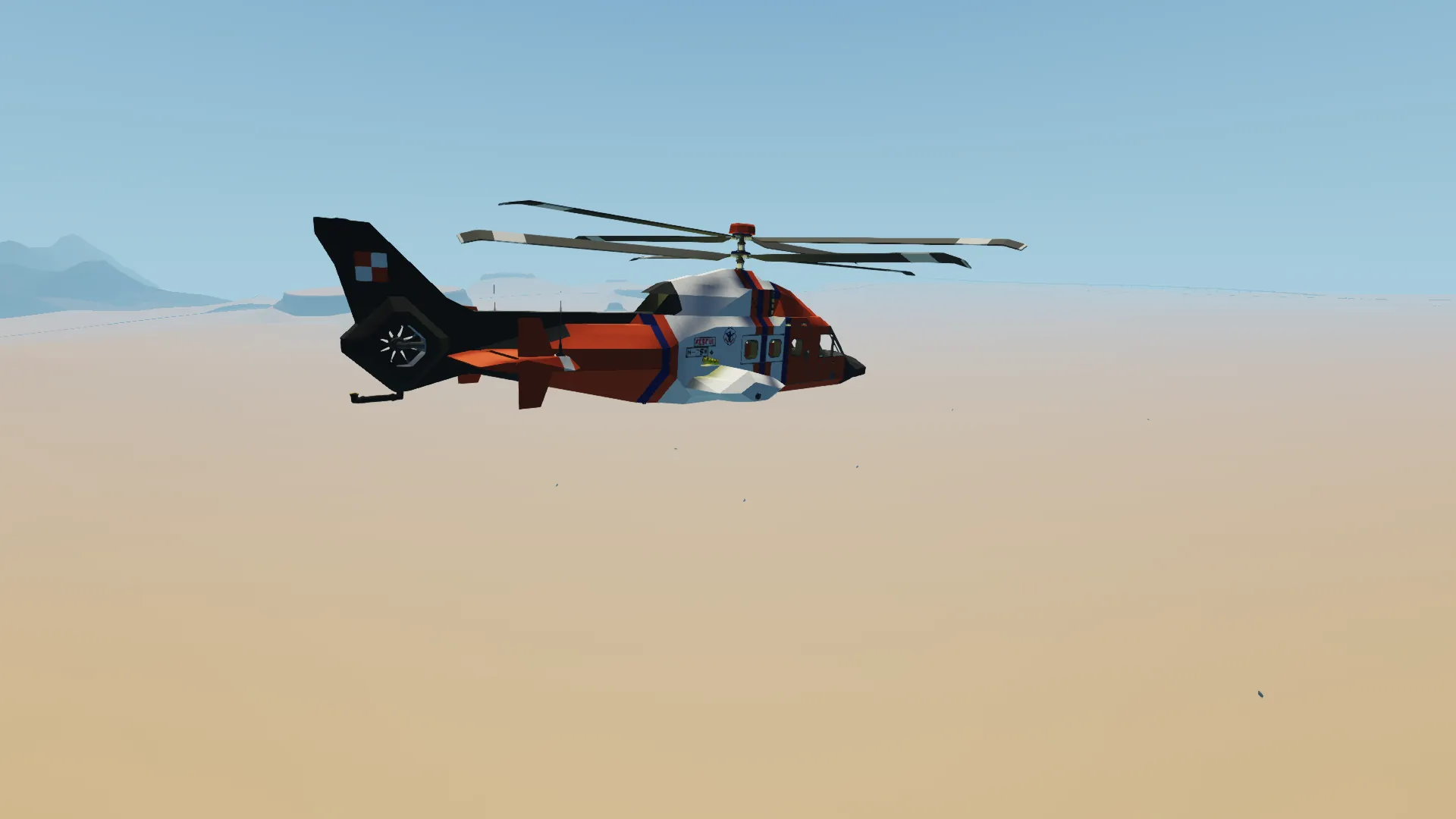 This is a fictional rescue helicopter based loosely off the AW-189. It's meant for search and rescue operations and can complete any rescue or fire mission that may pop up. It has a top speed of about 190 mph when cruise mode is turned on. It is able to land on the medical ship and can be used in conjunction with other creations if desired.