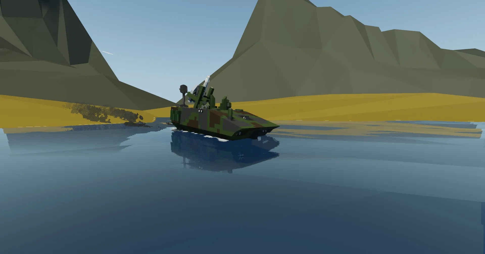 The AAV Maverick is a amphibious landing assault craft. This particular variant comes with an extendable scout camera as well as a turret with a few different weapons. Even more, it has plenty of features such as many different flares for different purposes, chaff, and smoke screens. Of course, it is still amphibious. It is lovingly called the Mutt by its crew because of its "floppy ears", which are the smoke screens on free floating pivots.