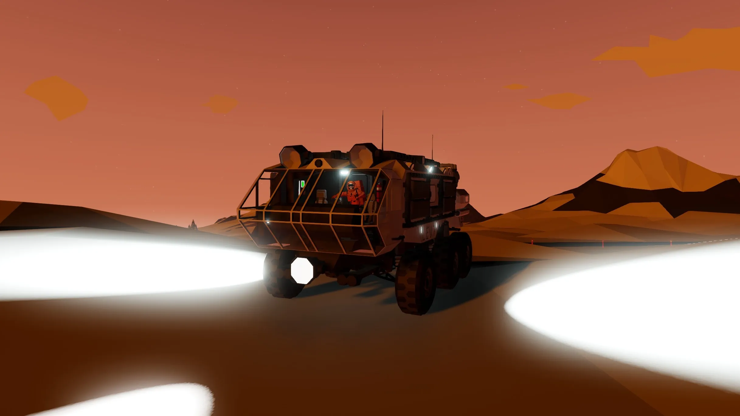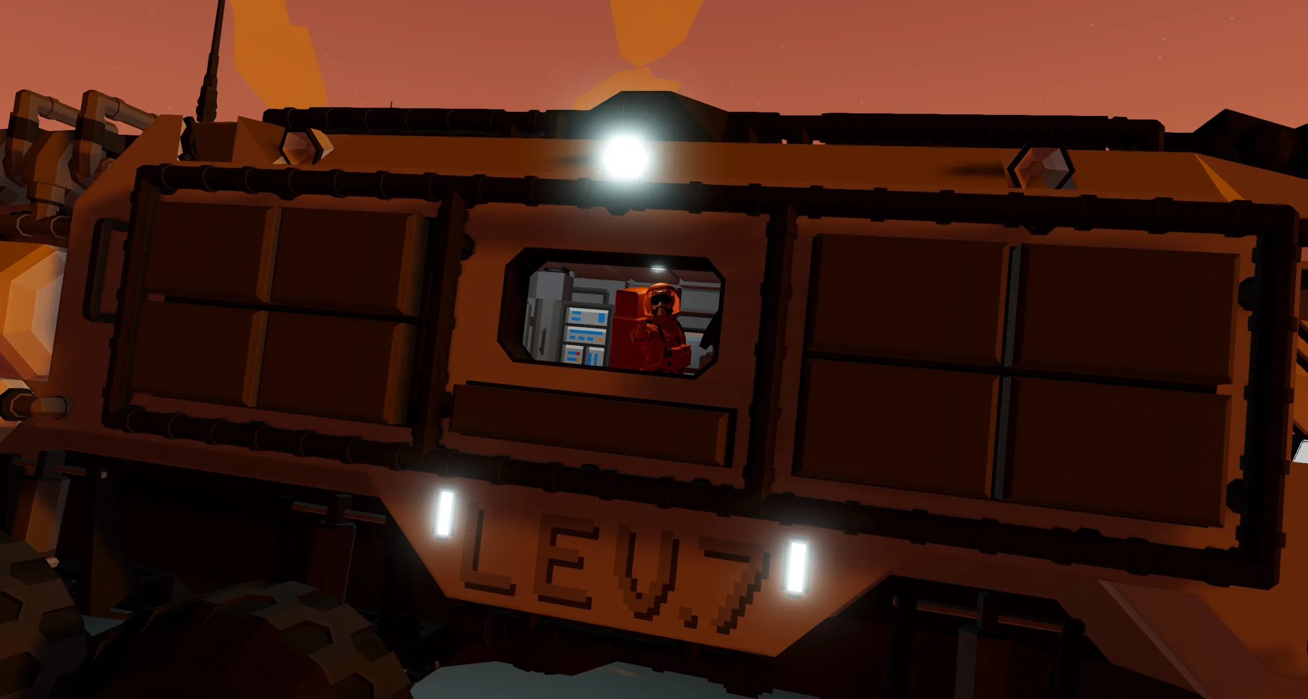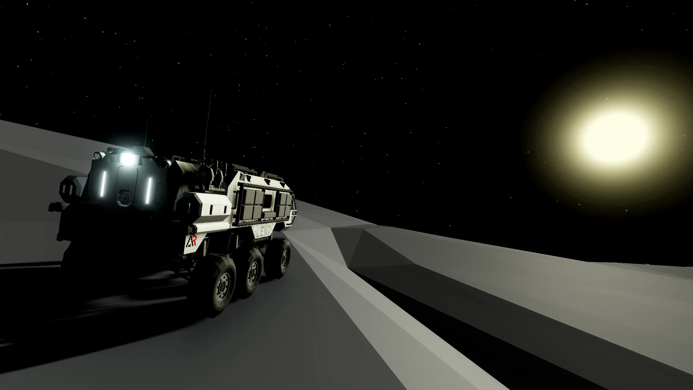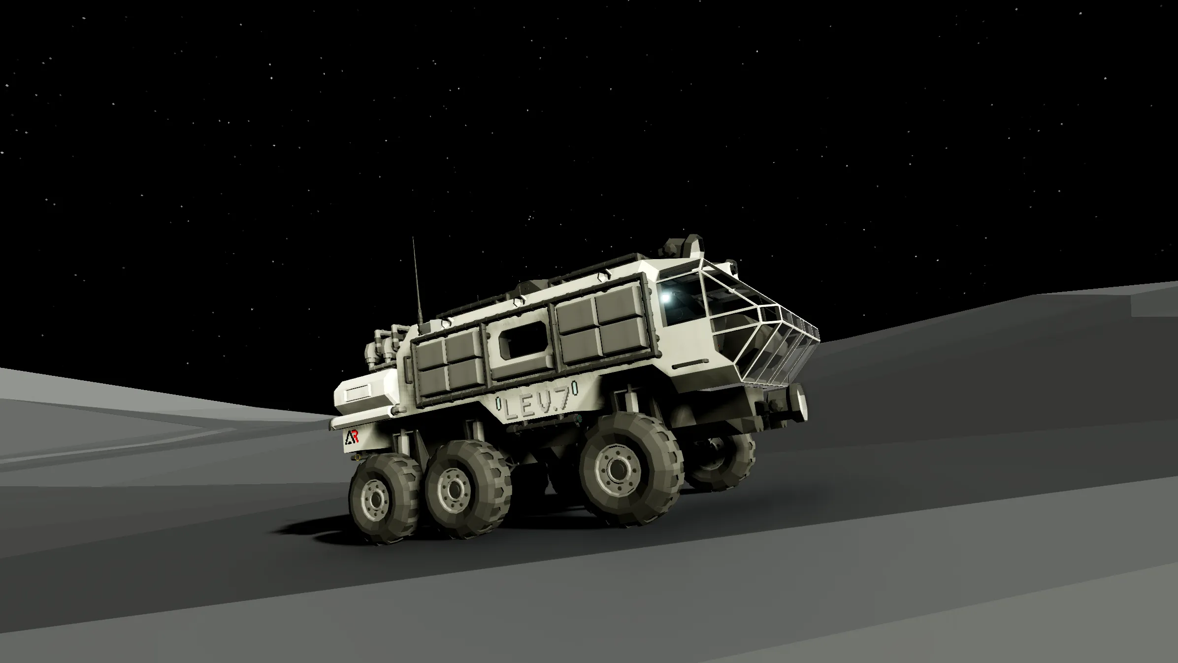 The L.E.V., designed by Artemis Dynamics®, is a diesel-electric hybrid vehicle made for efficient and versatile exploration of lunar and earth-like surfaces. Equipped with state-of-the-art life support systems, digital displays and communications arrays. With a two-man crew you are prepared to face any and all obstacles you might come upon on a lunar expedition.