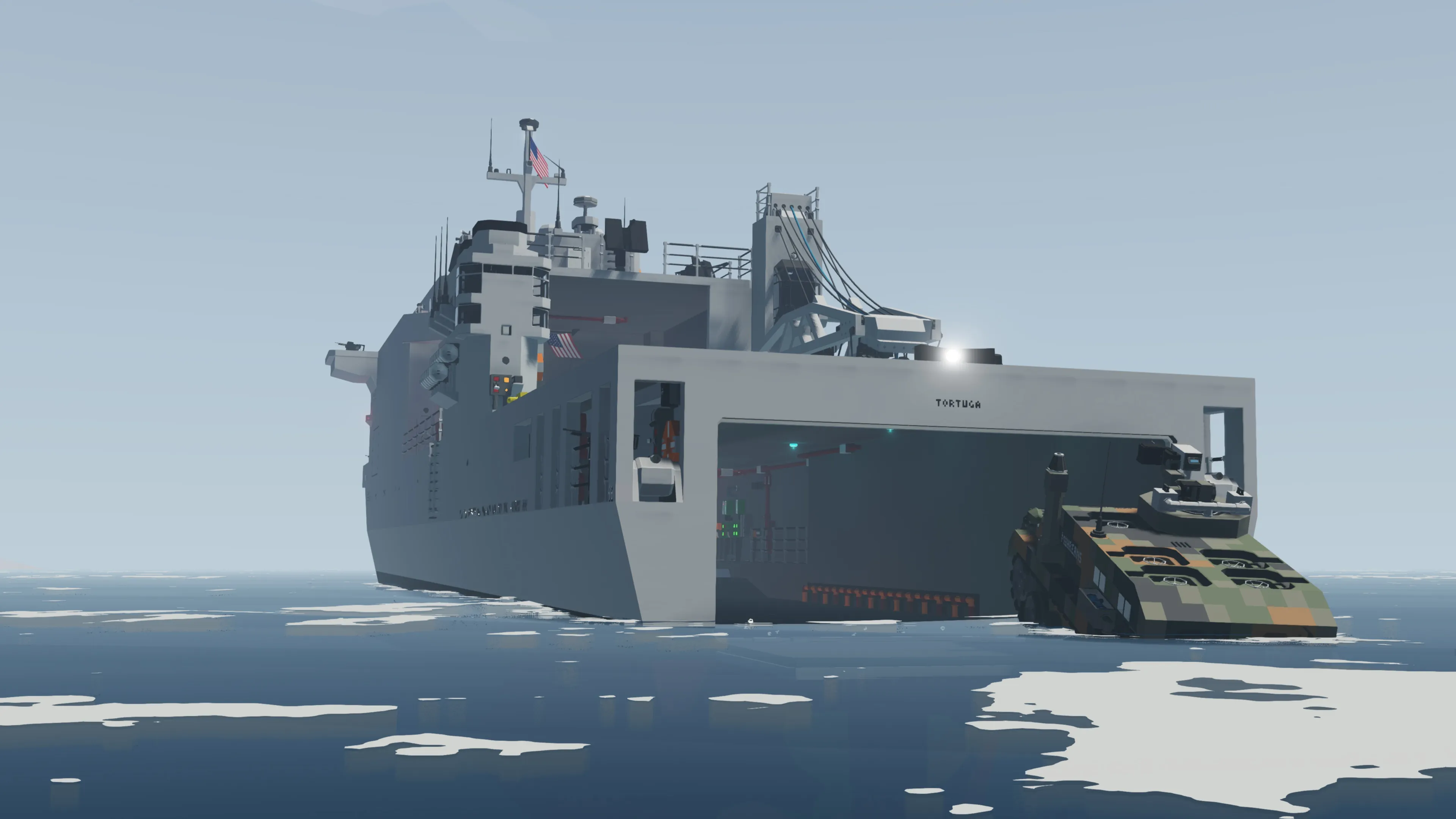 I'm a former Navy sailor and after making a LHA-2, I wanted to make a ship with a well deck that could launch and recover amphibious assault vehicles so I made LSD-46. This is loosely based on the Whidbey Island class LSD from the US Navy and made to fit in a standard workbench. It is designed to carry an AAV called LAAC-81 and can also carry a custom built LCU I've made for this ship called LCU-1628.