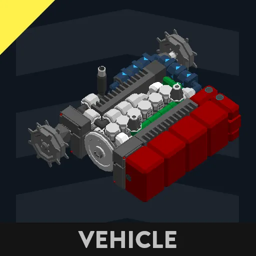 Modified variant of my 28 cyl turbo-charged engine to replace 4 cylinders with a fly wheel. This engine uses an exterior motor to start and requires the engine clutch to always be set to 1.