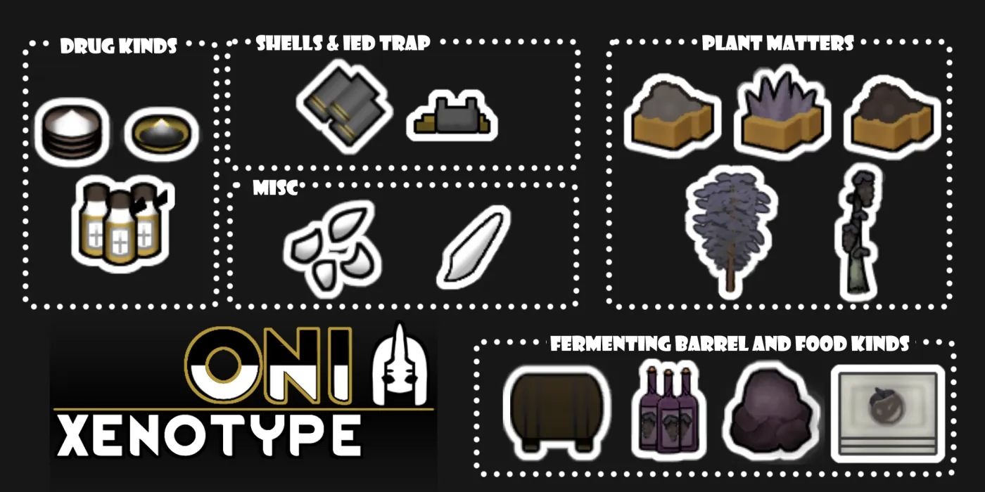 Oni Fragments: Oni fragments are a significant ingredient in this mod. You can collect them by waiting for Oni colonists to shed them, but it's much easier to kill an Oni, extract their horn, and break it into fragments.