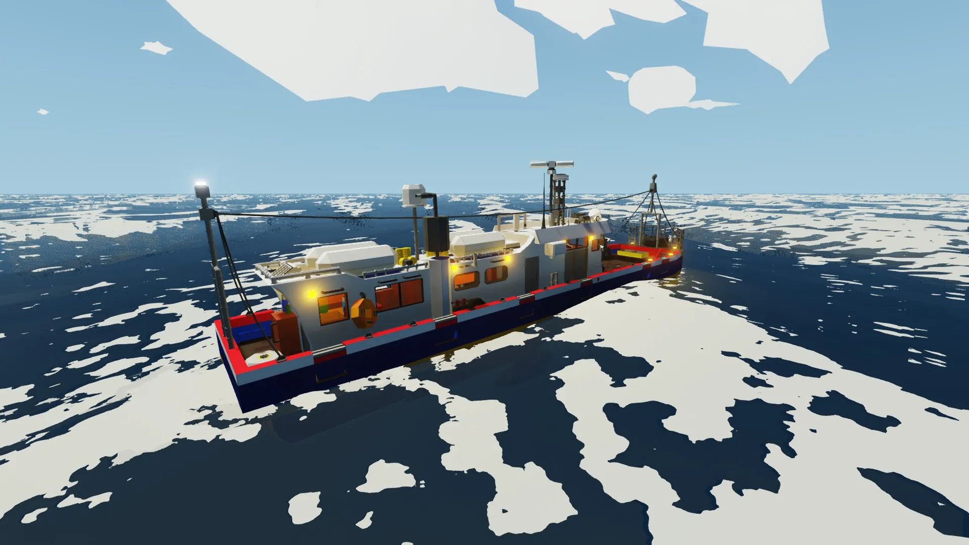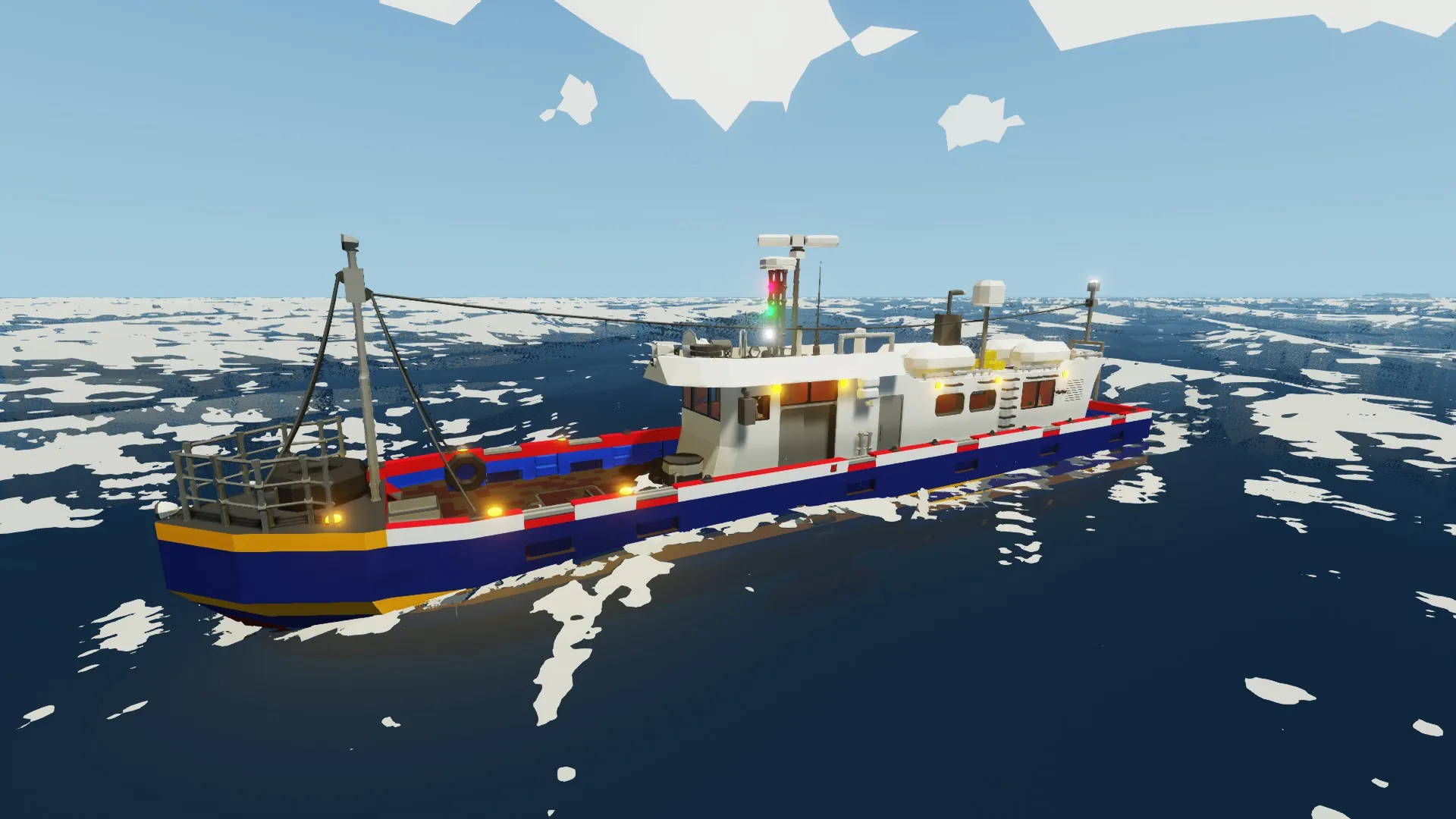 this is a crappy small-sized South Korean shrimp fishing boat, suitable for 4 people, built in two days, which can't actually fish because i'm not experienced enough to implement this feature.