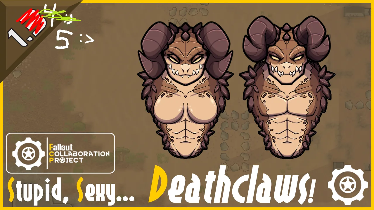 Adds a race of humanoid Deathclaws, dubbed "Deathcloids", and appropriate tribal factions. Deathcloids have natural armor and weapons in the form of their claws and hides. They are simple-minded compared to humans, and struggle with social and mental tasks. As well, their claws make tasks that require careful manipulation with their hands quite difficult.