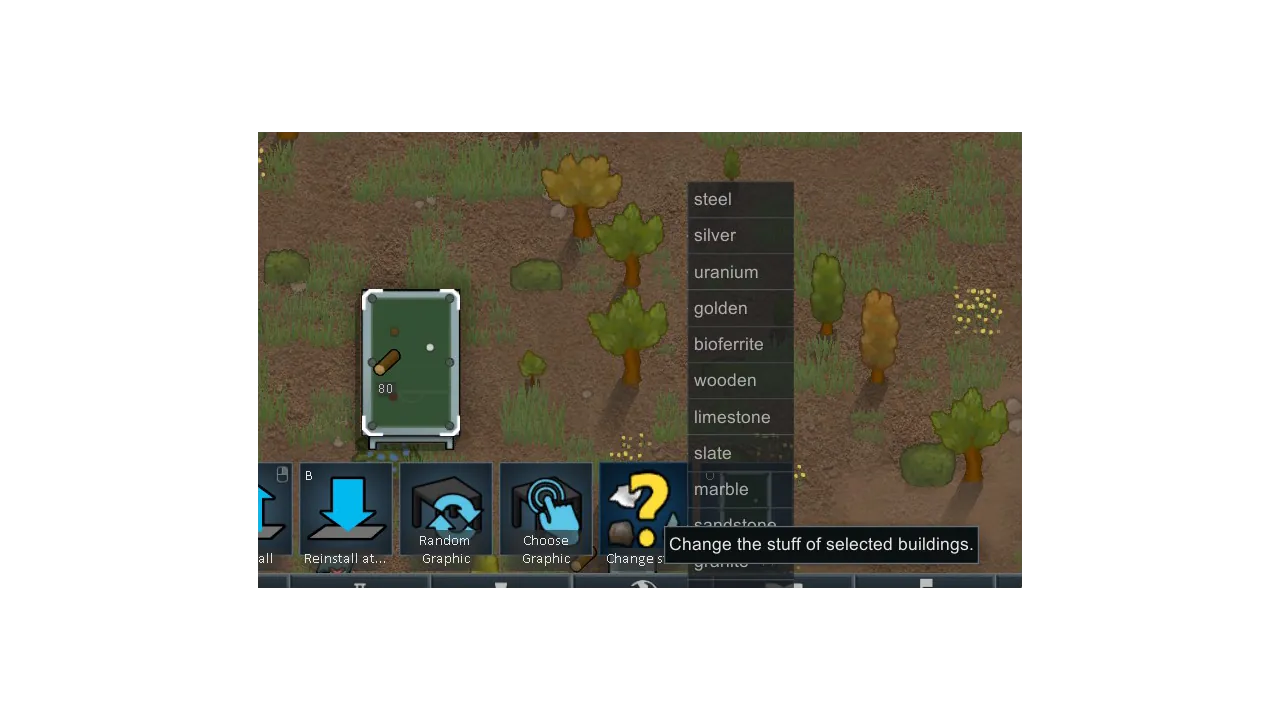 You can change stuff for buildings and artworks by selecting them and then choosing a stuff. The original stuff is 100% returned and the quality will be kept.