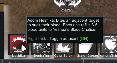 Automatically use Adom Neshika Right-click the gizmo to toggle automatic use. While drafted, scans for hostile targets every 10 ticks and uses Adom Neshika. While undrafted, scans every 2 seconds.