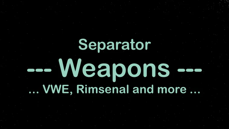 Separator for Weapon Mods such as: Vanilla Weapons Expanded, Rimsenal Weapons and other Mods that add new Weapons. This Mod has no Code and Acts as a Separator to keep Order in Modlists.