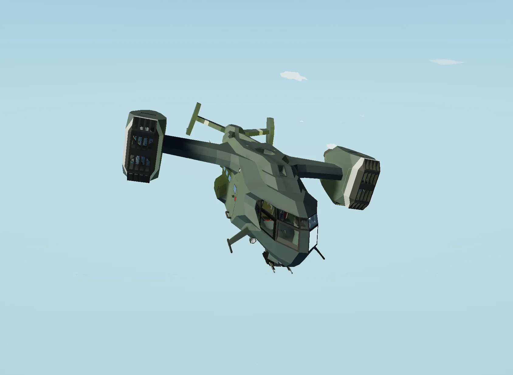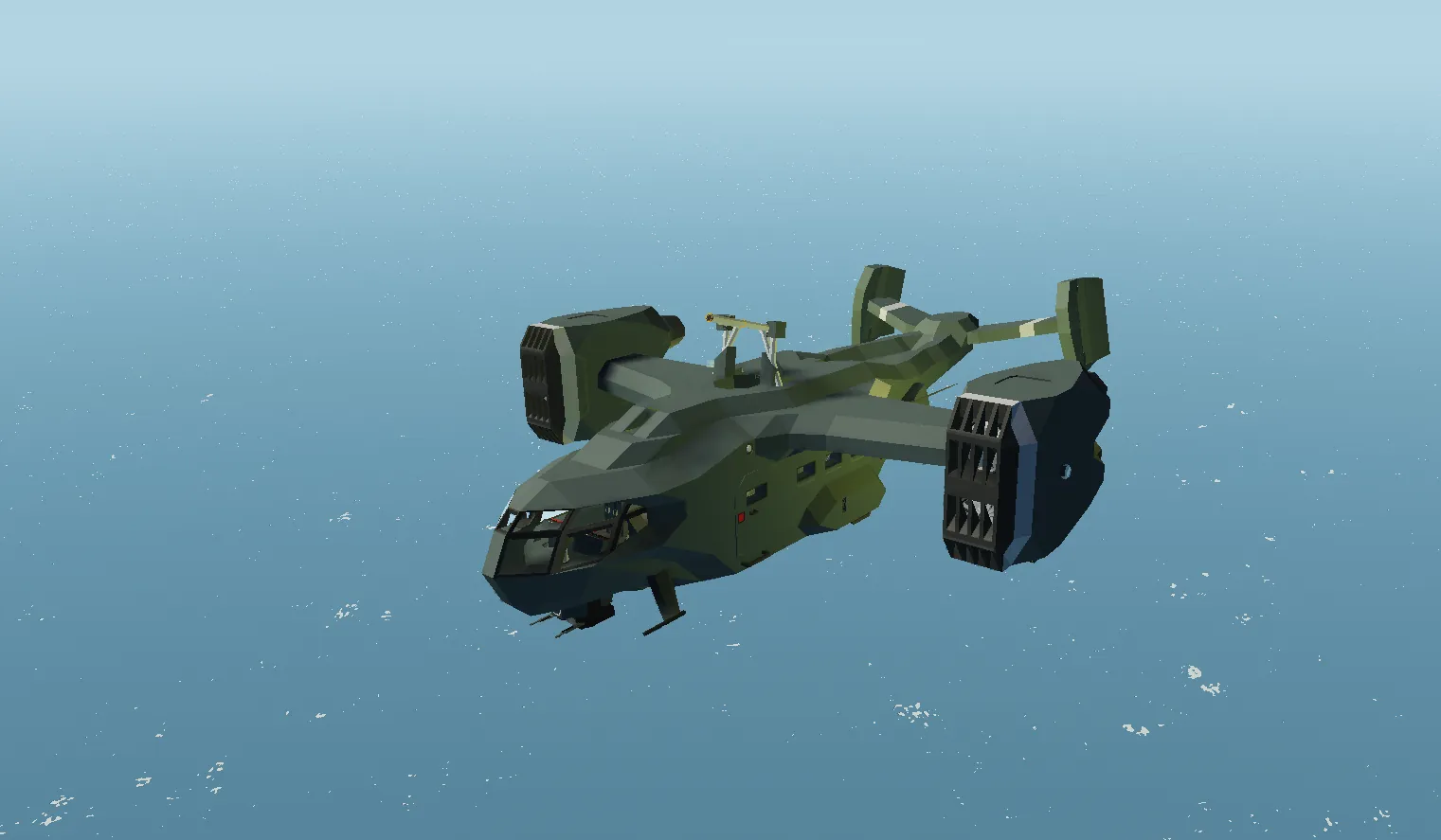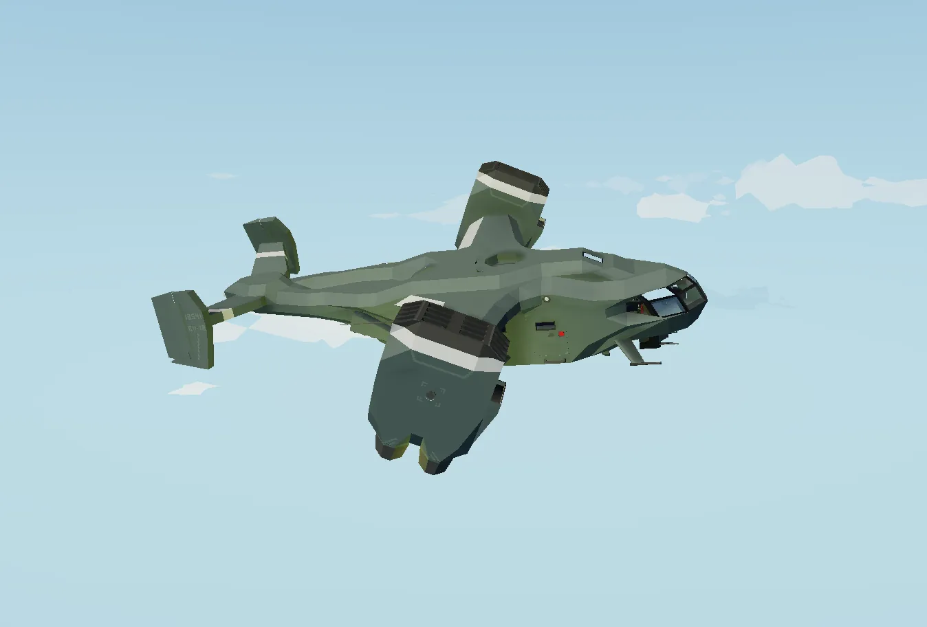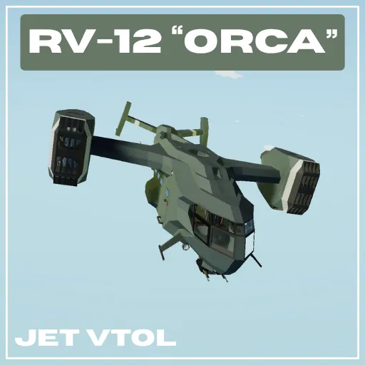 The RV-12 “Orca” is a recon and light troop transport VTOL for Whack Al’s Flying Carrier challenge. It uses twin tilt jet engines to transition from VTOL to forward flight.