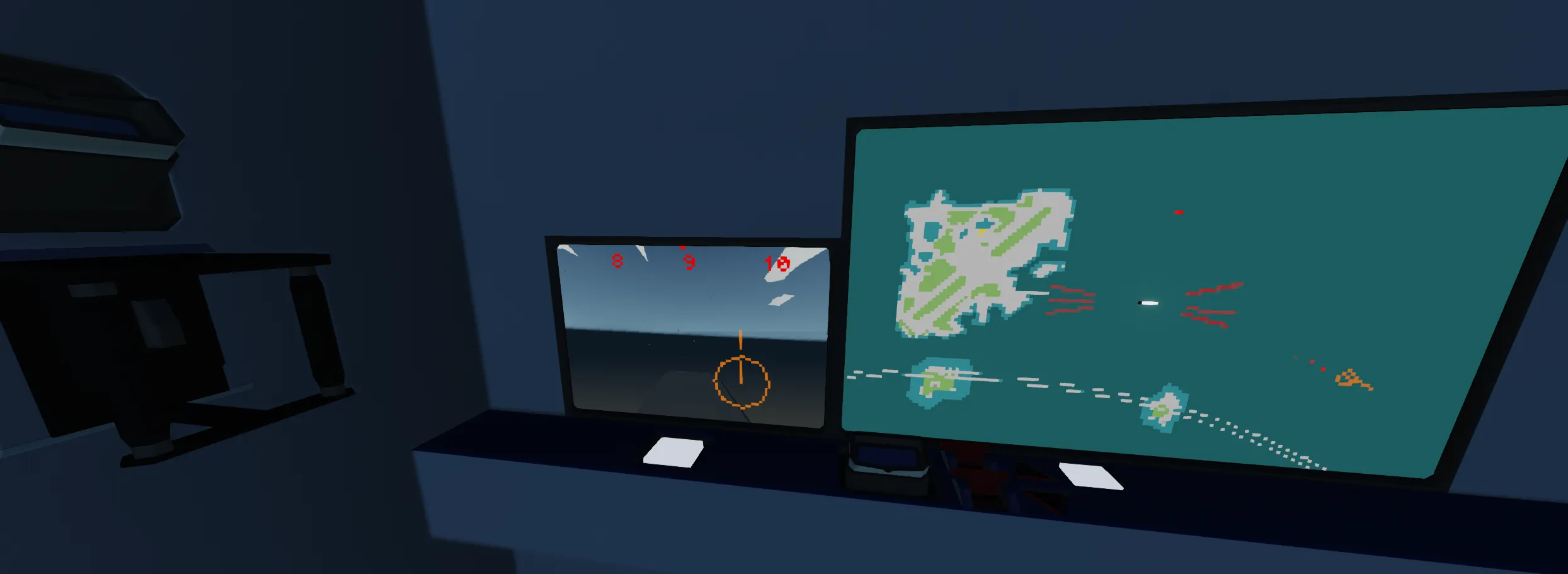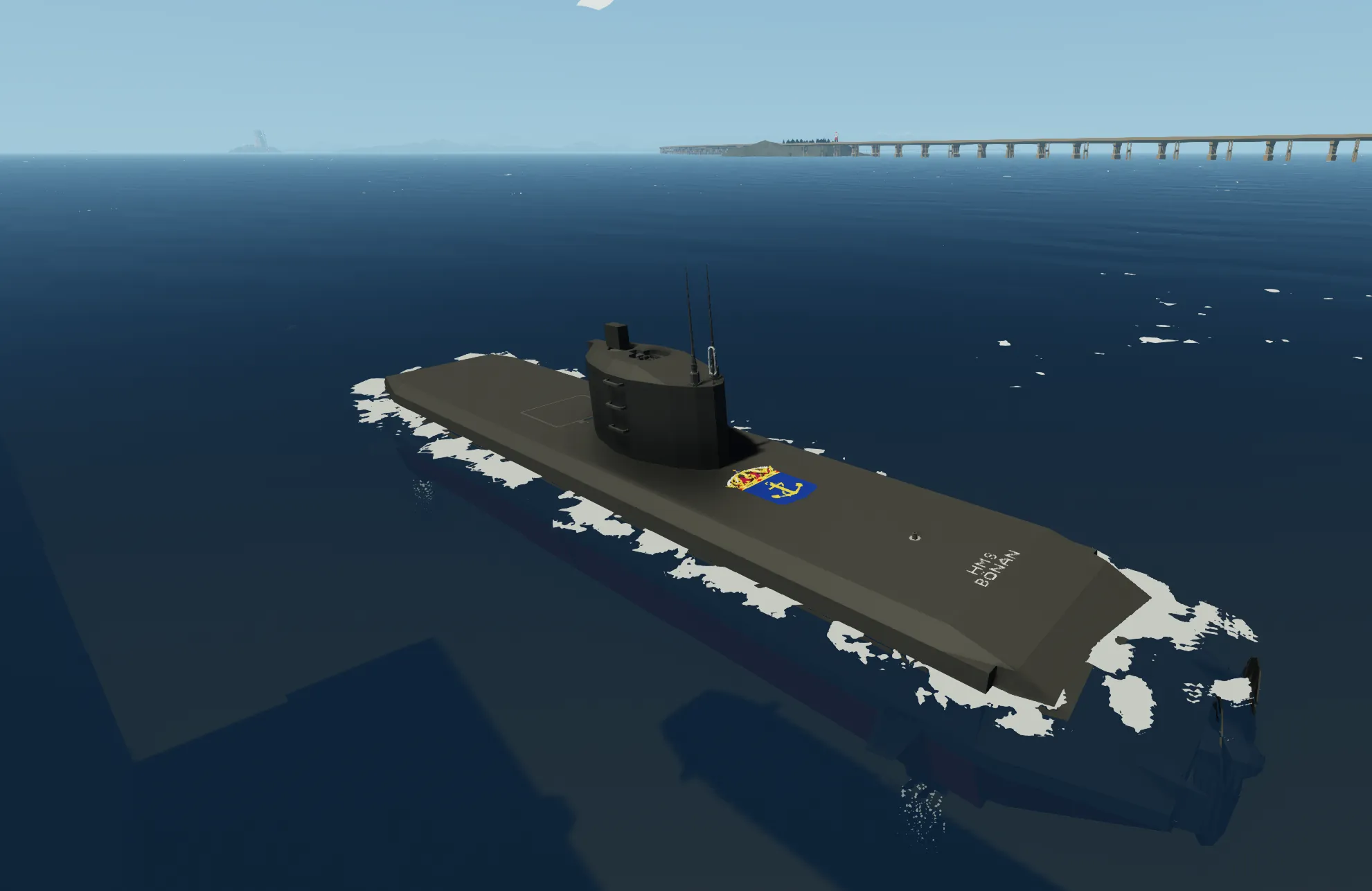 A Swedish style 2 player torpedo submarine with camera guided torpedoes and sonar.