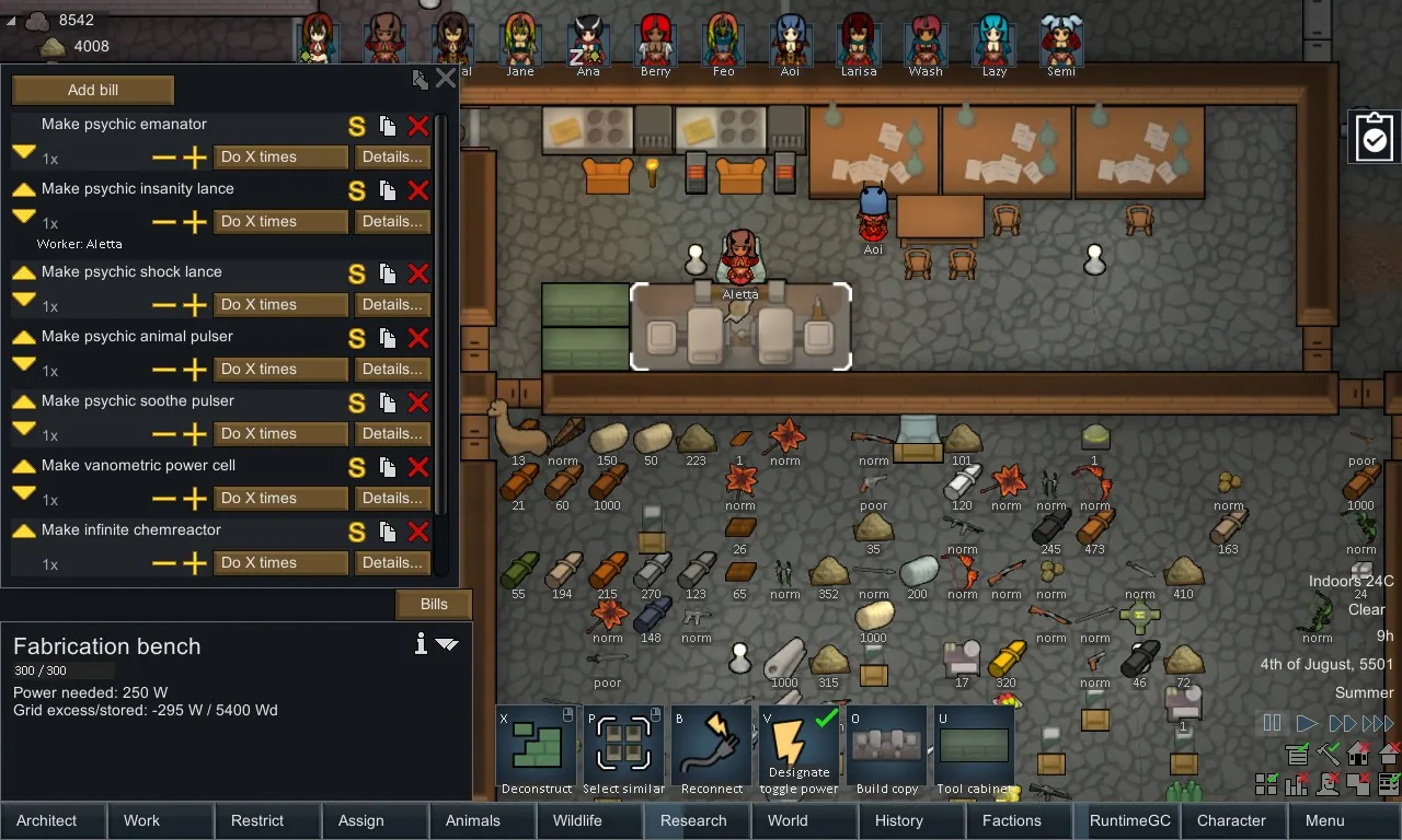 Four types of artifacts (psychic insanity lance, psychic shock lance, psychic animal pulser, psychic soothe pulser) require the same material cost.