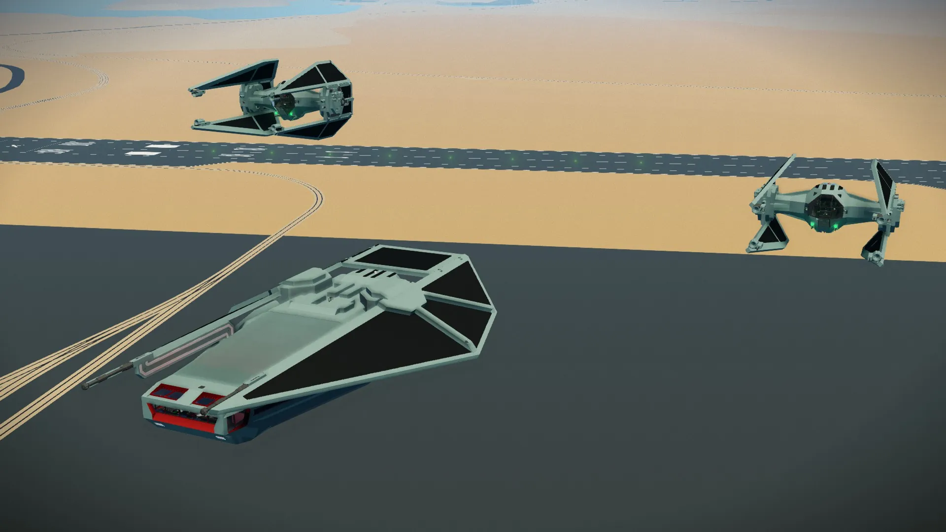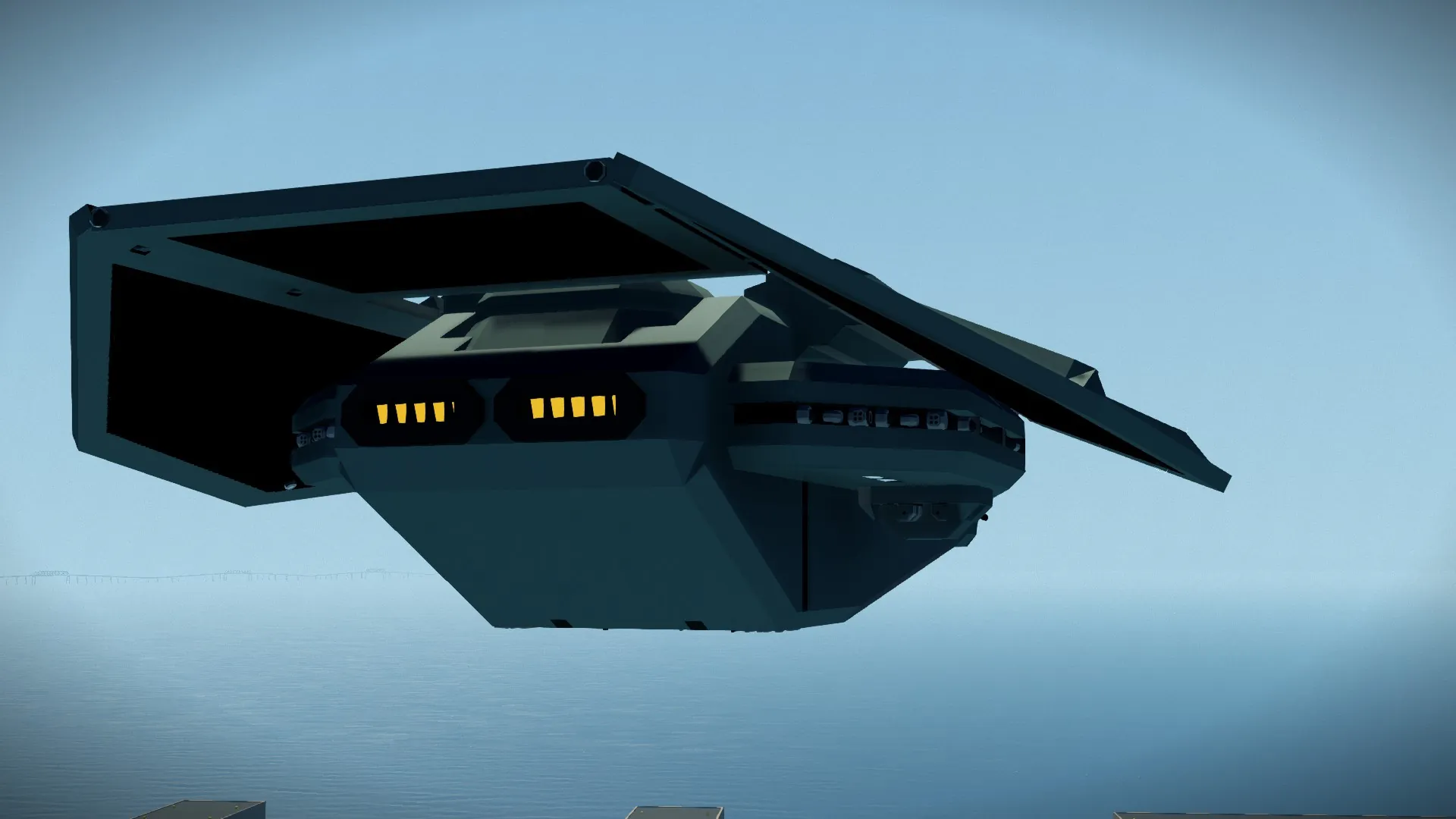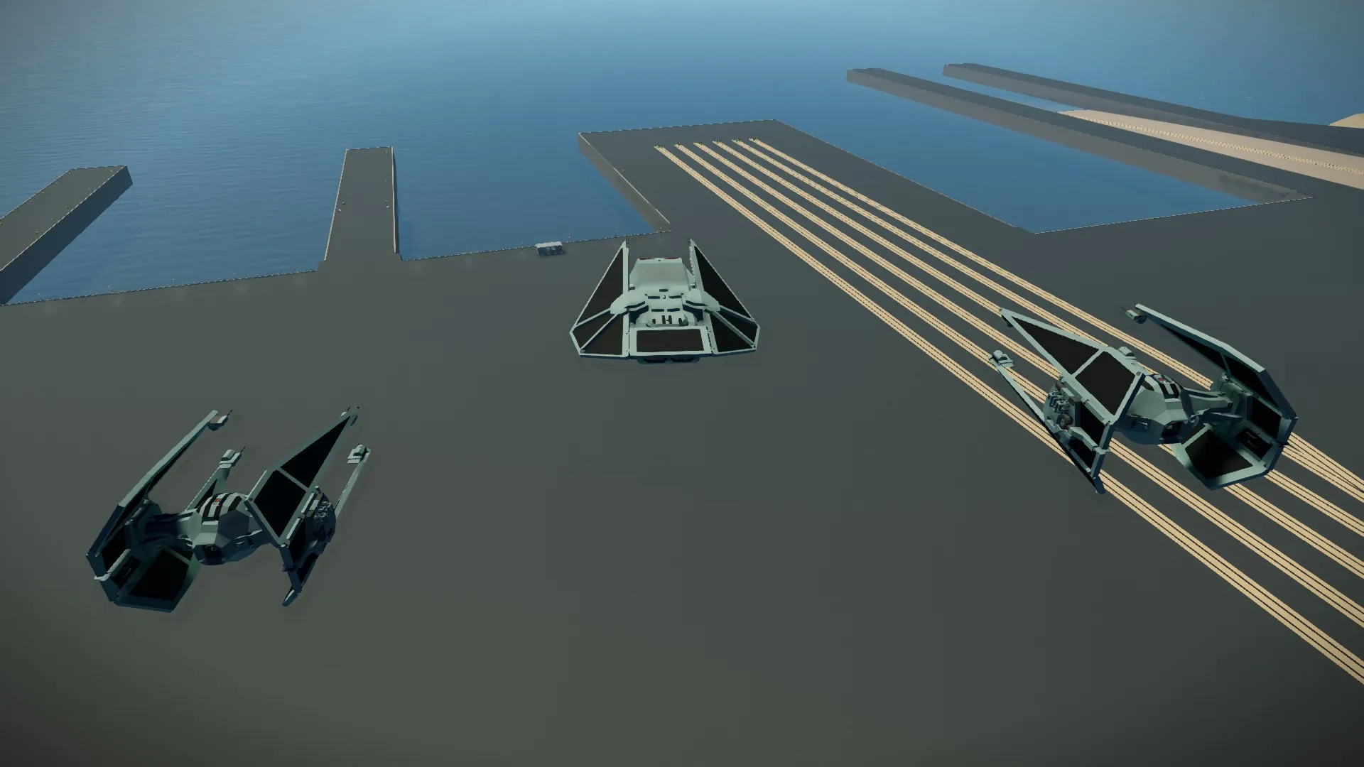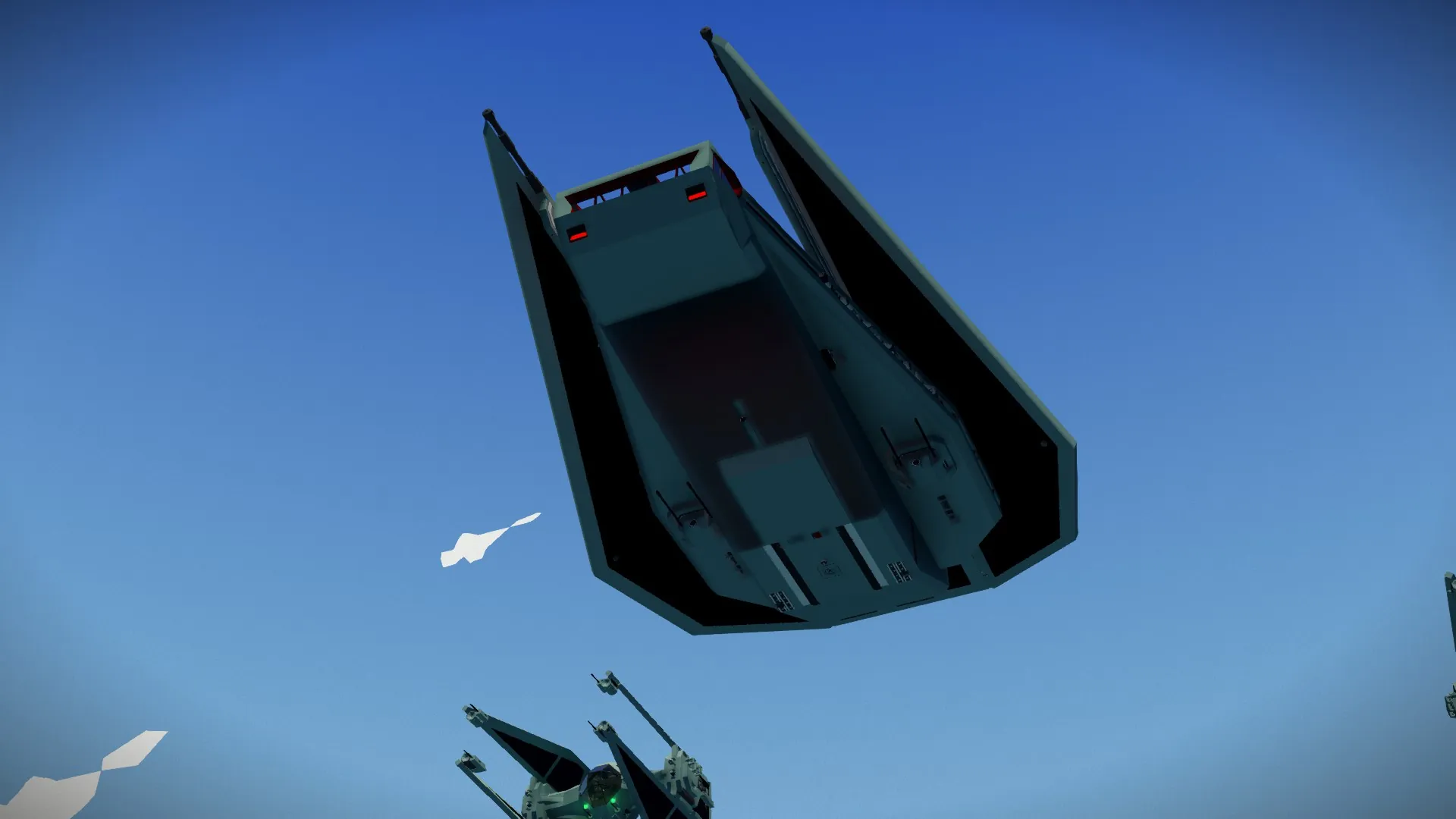 This Tie Reaper is for Whacks carrier build challenge. Its made to dock on the top mounted rails. Its a imperial drop ship capable of dropping in 18 players to the fight quickly. It has altitude hold, autopilot, auto docking assist, drop mode for quick drop and goes, and is highly stabilized in VTOL operations. It is also armed with twin heavy auto cannons, and a pair of light auto cannon turrets with a dedicated gunner and pilot take over option. This ship is also mostly immune to small arms fire as well.