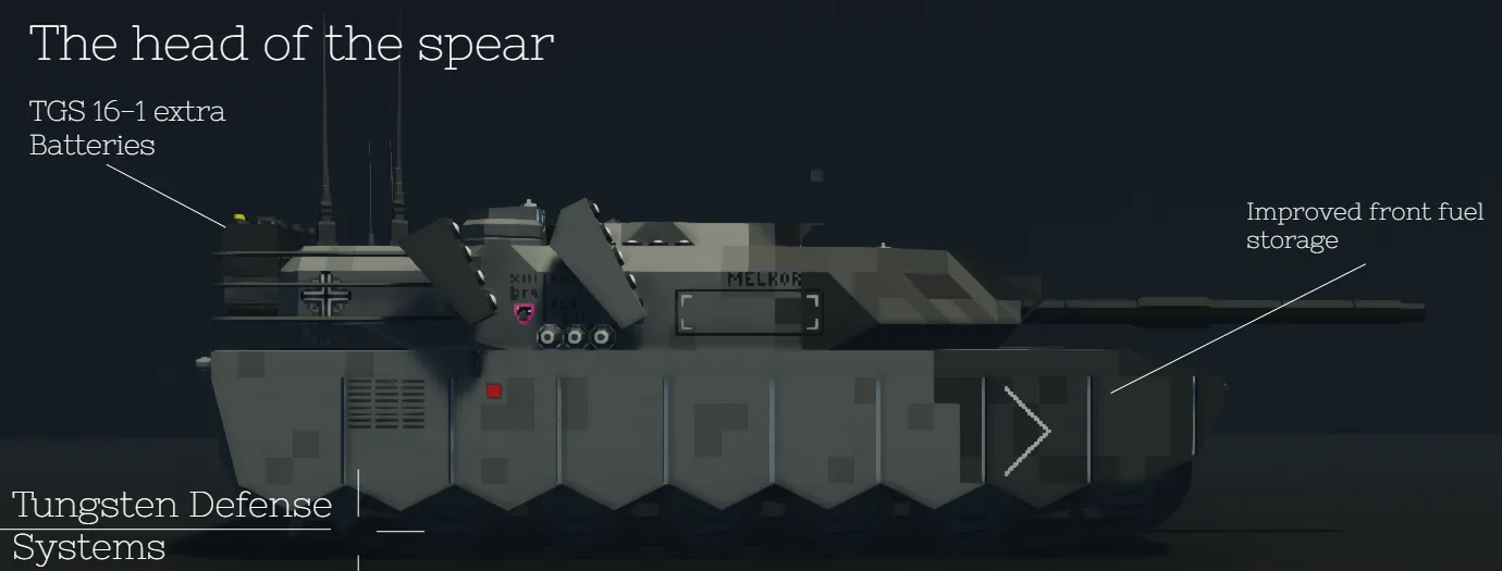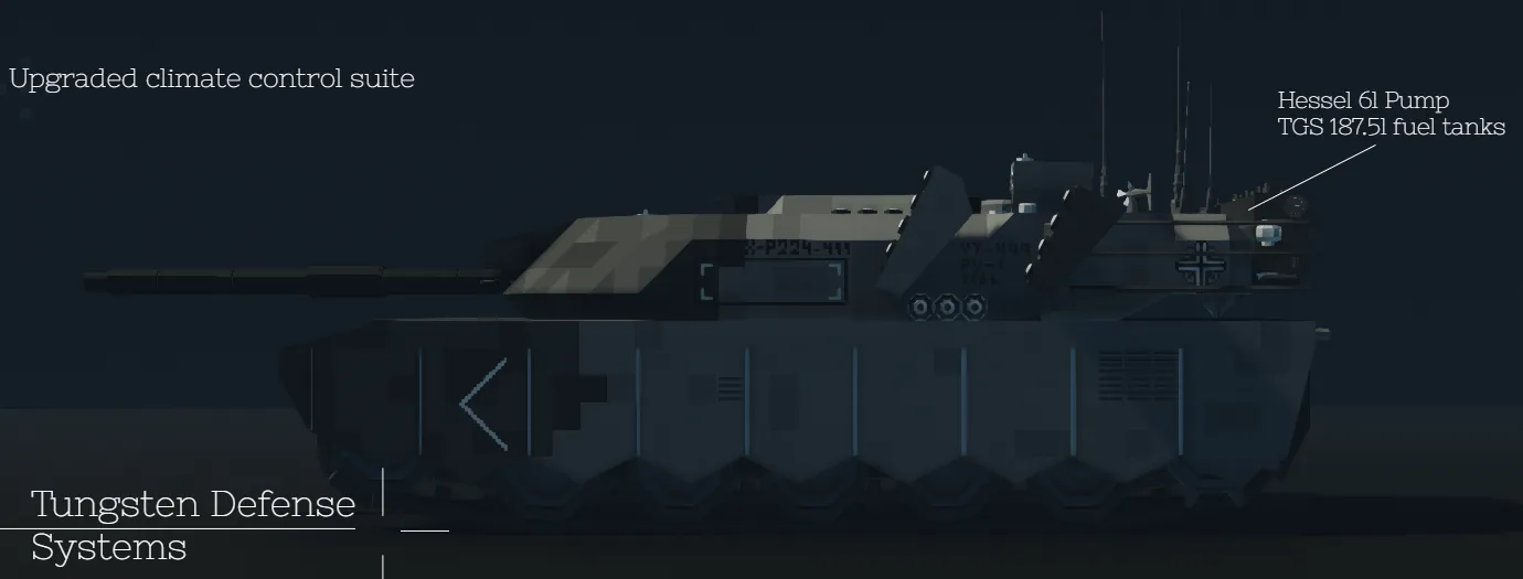 You will find multiple fuel tanks, batteries and a pump in the back of the turret, these can be taken out and used to replenish the MBT's fuel/batterie reserves.