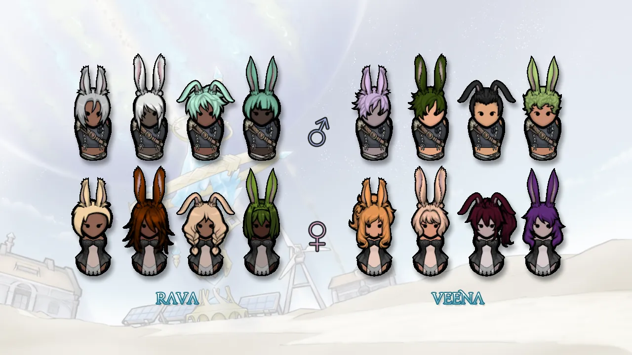 [*] Viera skin colors and hair colors are sampled from the FFXIV color palettes.