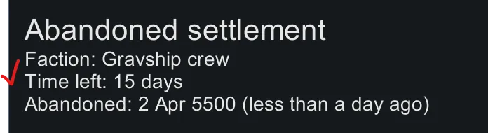Adds automatic expiration, similar to event sites, for abandoned (settlement/gravship) sites. The duration can be configured in mod settings