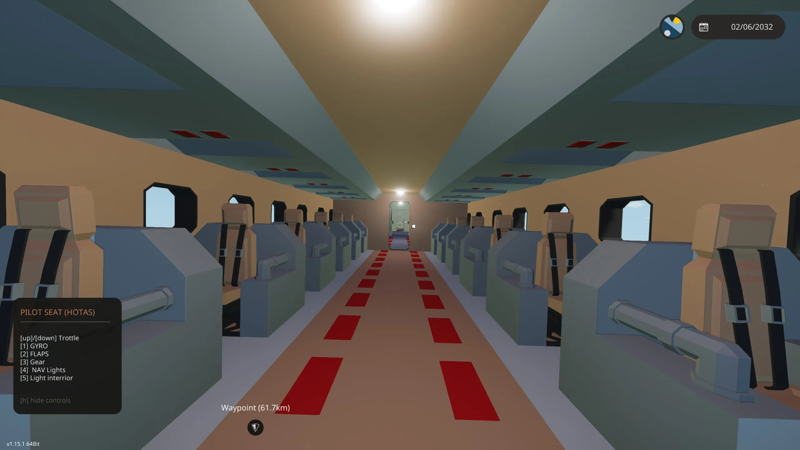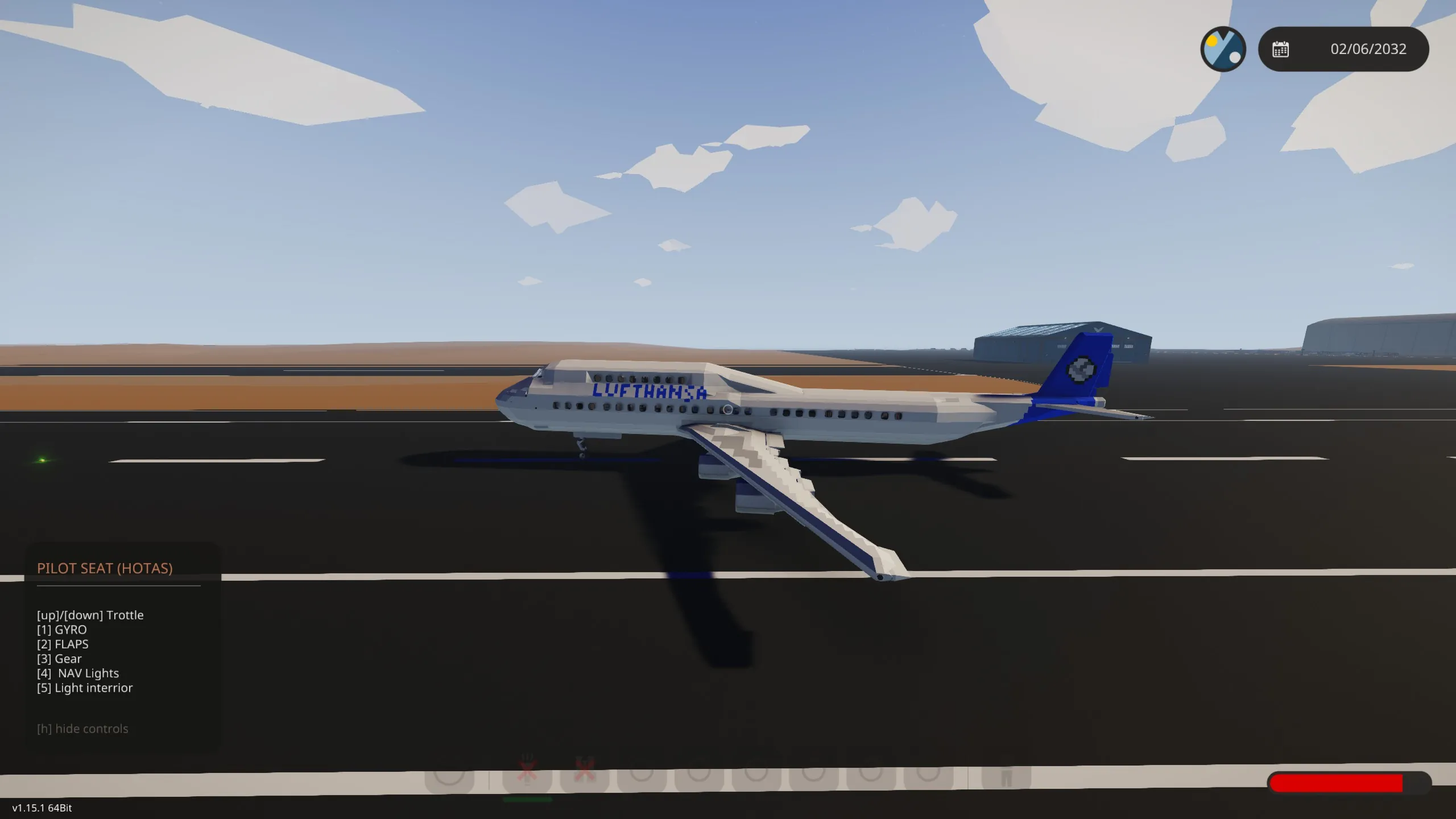 • The ALT hold system requires trim "W" to +0.2 and GYRO active to level the plane. Keep in mind that with flaps deployed, the plane is going to fly with a nose-down angle to maintain altitude. Deactivate flaps to fly level.