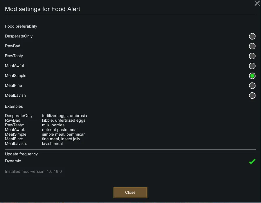 [url=https://steamcommunity.com/sharedfiles/filedetails/changelog/2017538067][img]https://img.shields.io/github/v/release/emipa606/FoodAlert?label=latest%20version&style=plastic&color=9f1111&labelColor=black[/img][/url] | tags: supplies