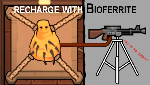 For vanilla turret. The mod replaces the required steel with bioferrite. Fully charging the ammunition requires 80 units of bioferrite.