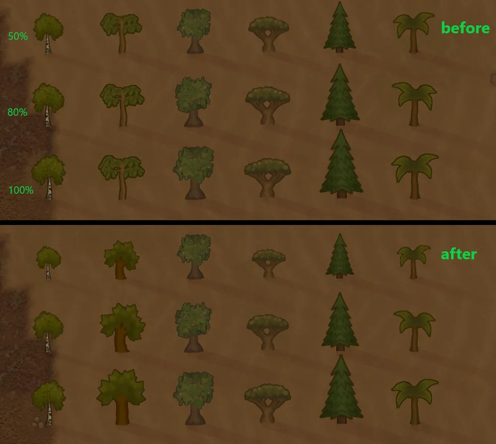 I got annoyed clicking a tree thinking it's fully grown and it's only at 50%. This changes 1 variable so trees better scale with their growth percentage.