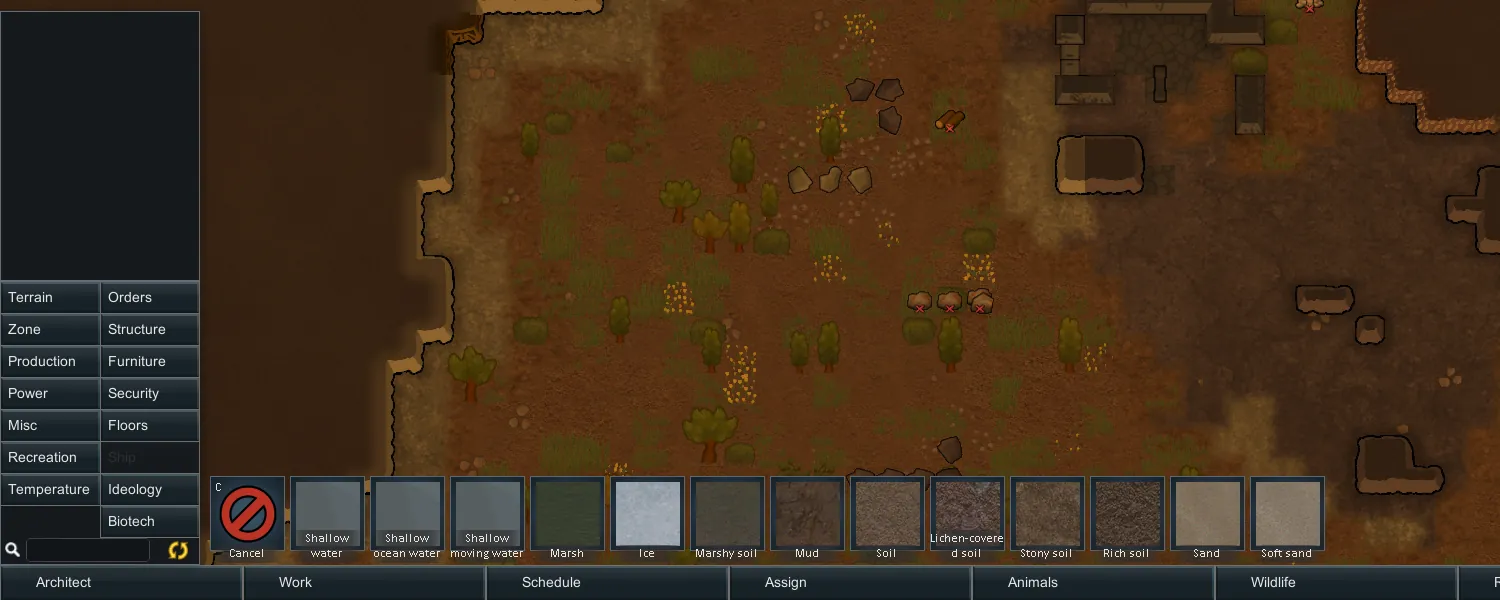 This mod patches the vanilla terrain to be buildable. All terrain can be found in a new terrain category in the architect menu.
