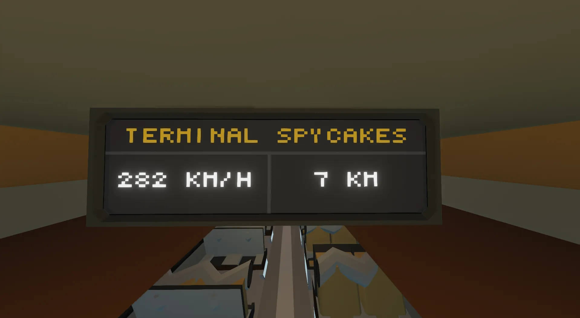 The inside displays cycle trough three screens. These will by default change every 5 seconds. But if you want to override it there is a control screen at the end of each car, by the doors, with four options: "Auto", "Temp", "Speed", "Map".