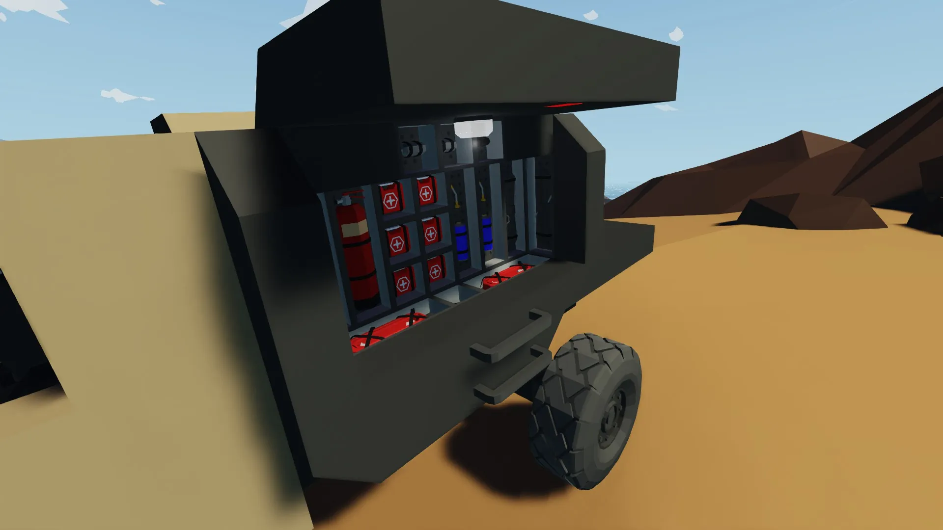Rear canopy/ storage with all the items you could need for a rescue or exploration including weapons.