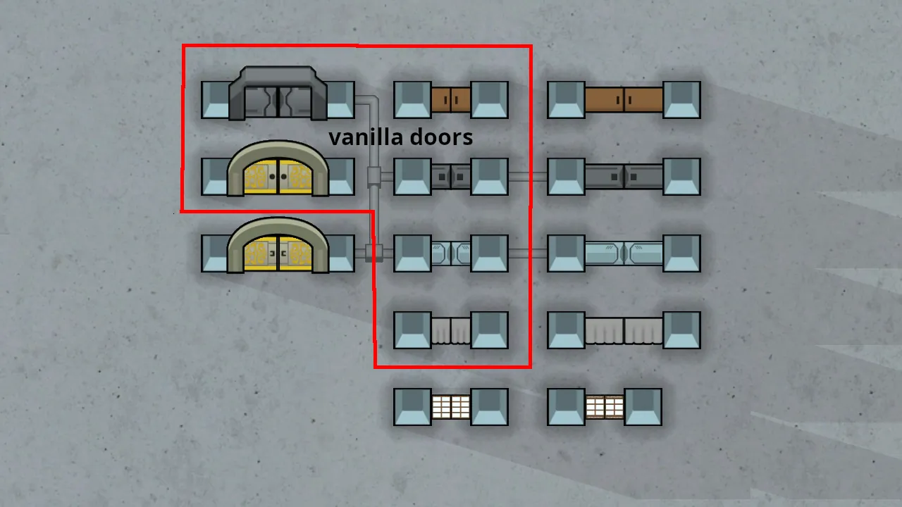 [*] Double autodoors do not cost more additional materials or power compared to their single door counterparts (40 steel, 2 components, 50 power), and have a techist style variant