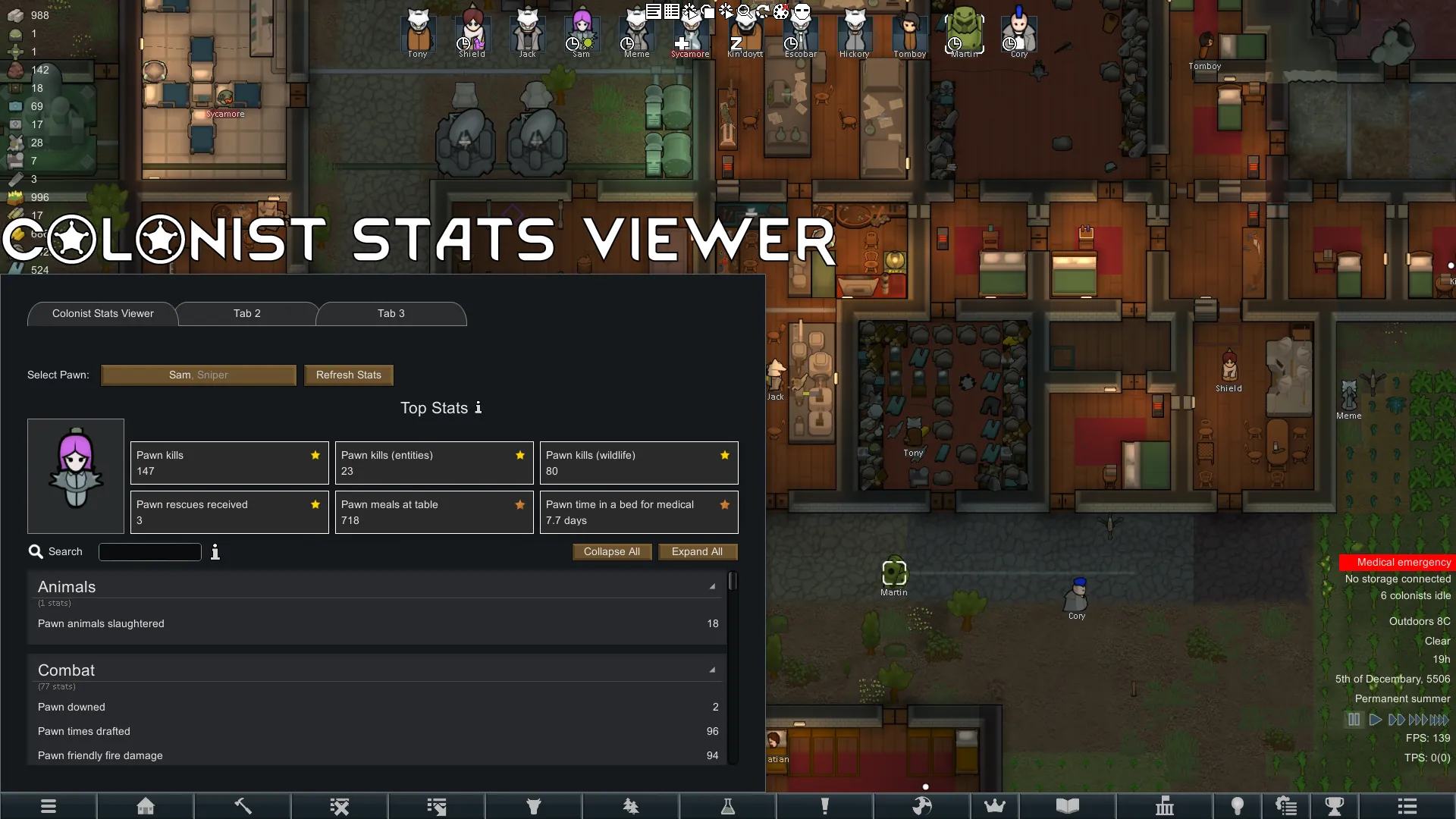 RimMetrics is a lightweight telemetry and statistics framework for RimWorld. It tracks gameplay metrics for pawns and the colony, and surfaces them in a dedicated in‑game stats tab. It’s also built to be used as a dependency by other mods.