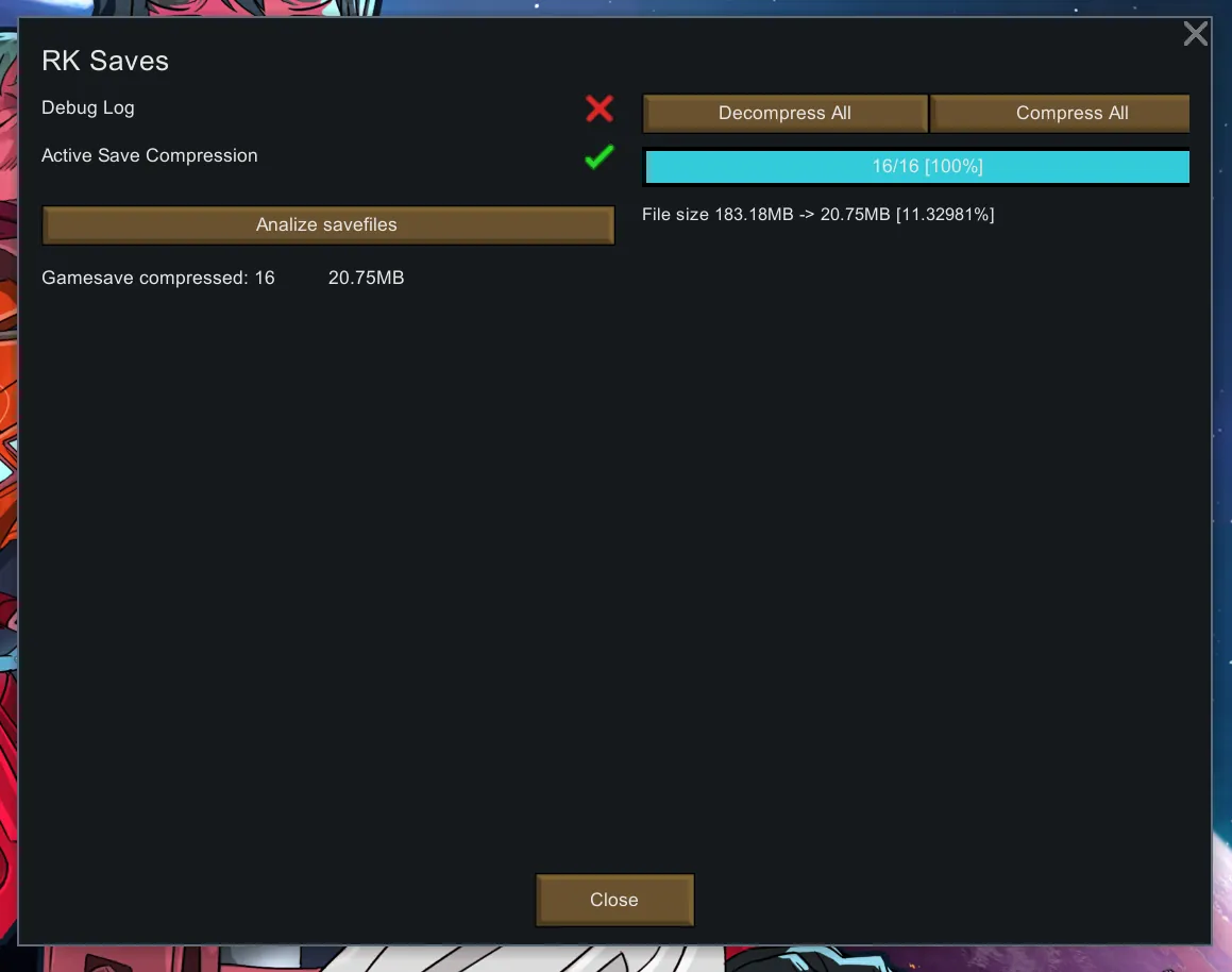 This mod is similar to [url=https://steamcommunity.com/sharedfiles/filedetails/?id=2032036337]Savegame Compressor[/url]