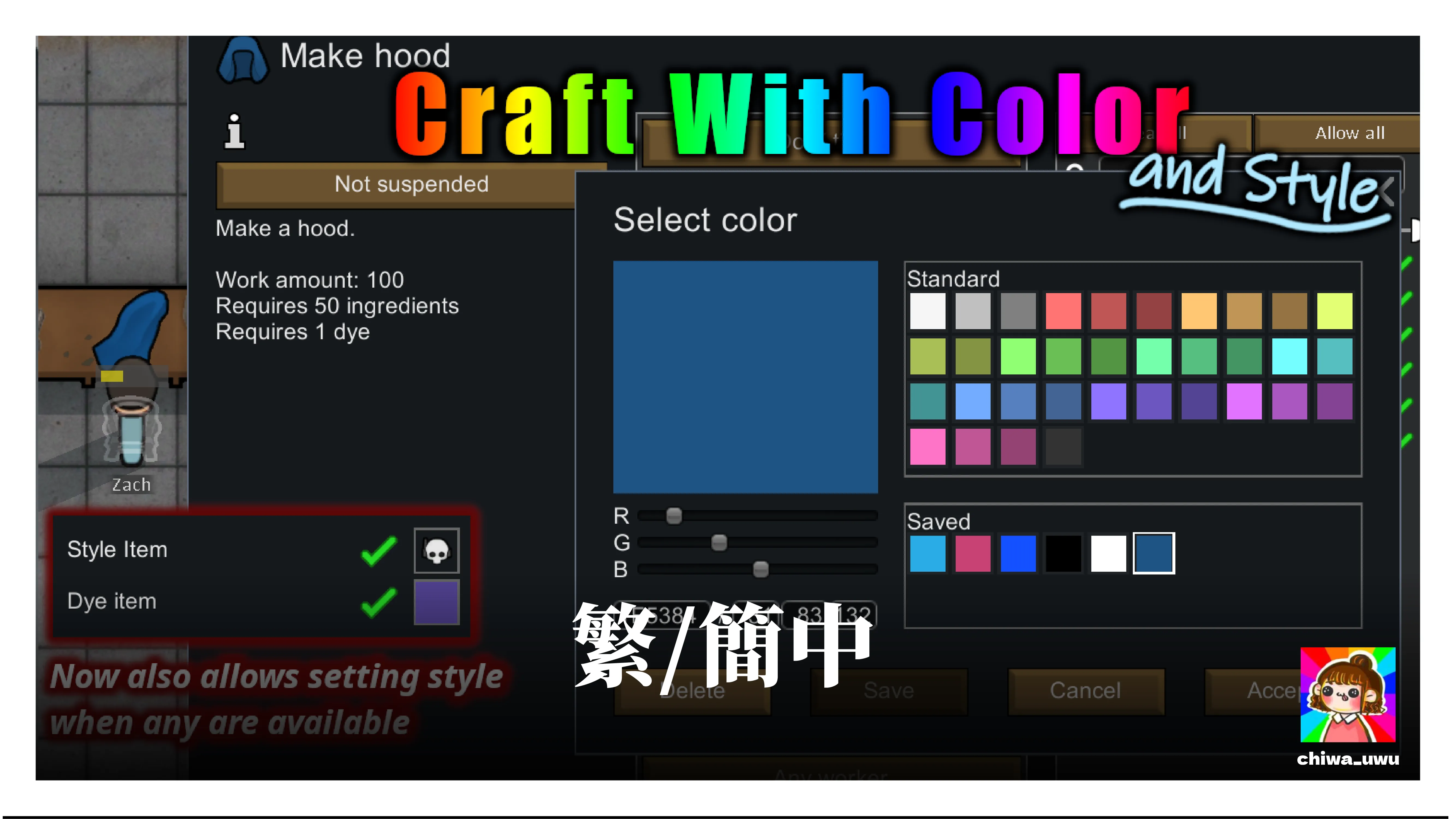 同時允許在梳妝台中使用任何顏色,而不僅僅是預設的色票。