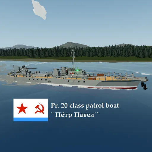 Pr. 20 class patrol boats were 19 patrol boats (fictional) build by Soviet union between 1938, and 1941 in Odesa and Sevastopol. Thesse boats could be used as subchasers as well, as they were armed with depth charges. They served in the Black sea, and its rivers. My inspiration for this project was the Soviet OD-200 class boats.