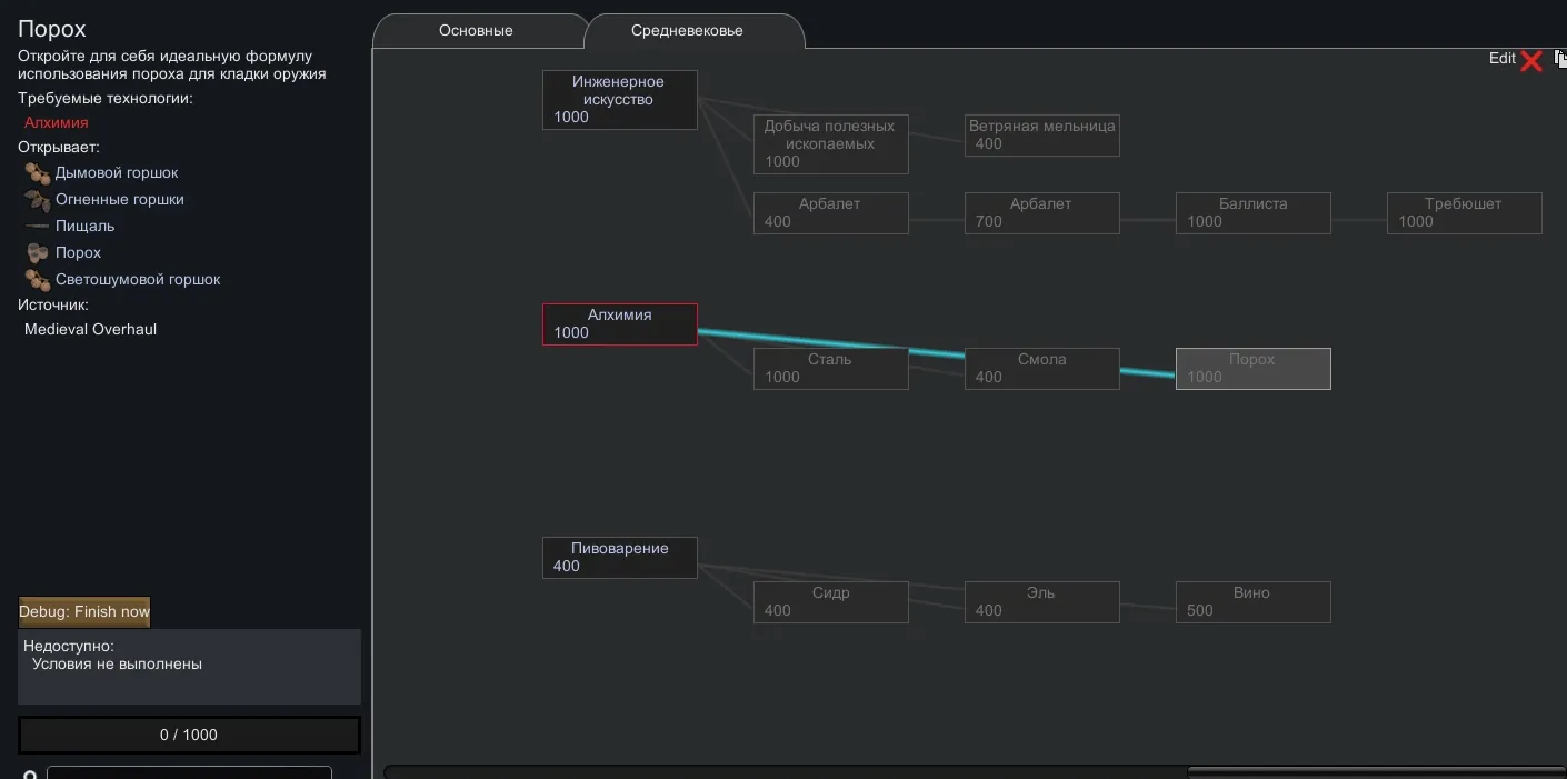 - Отредактировано и перенесено исследование длинных клинков, пластинчатых доспехов, изогнутого лука и большого лука на вкладку Medieval.