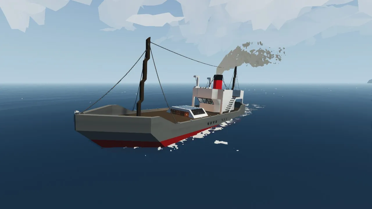 This has a full interior, it is a bit clastrophobic tho... it has two medium sized engines,a smokeroom with a skylight. there is a captains cabin, alot of crew beds and a lifeboat on deck for safety reasons. Hope you like it...