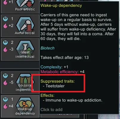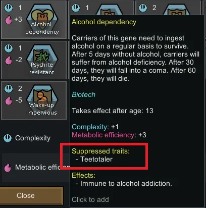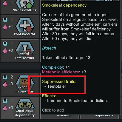 now chemical dependeny genes suppress Teetotaler traits.