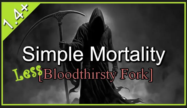 This is a 70% less bloodthirsty fork of the mod [url=https://steamcommunity.com/sharedfiles/filedetails/?id=3043858025]Simple Mortality [Bloodthirsty Fork][/url] with 100% more surprise. One might also call this the Sudden Death Fork.