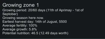 [*] [b]Food estimates:[/b] An estimate is given on how much nutrition a zone may potentially supply, including its days' worth of food given the current colony population.