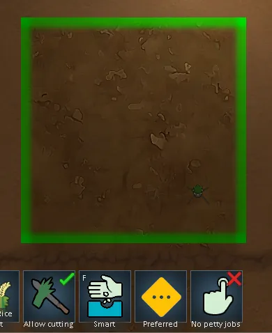 [*] [b]No petty jobs:[/b] When enabled, this prevents pawns from re-sowing a zone if the number of empty tiles is below a configured threshold. This can be useful for livestock grazing zones, so pawns don't come racing over to replant a blade of grass a cow just ate.