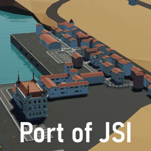 The port of JSI is the Capital city of the country Verdunia with a scenic road going beside it.