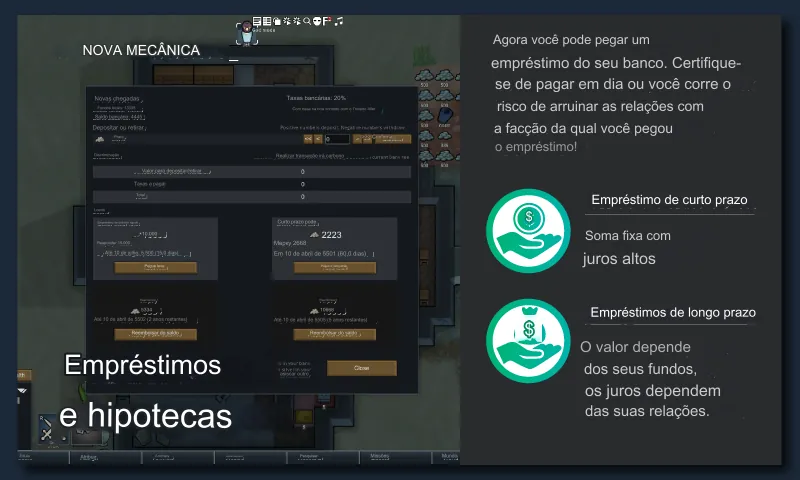 Este mod revisa o sistema de negociação e adiciona muitos novos recursos, como o banco, rede de notícias planetárias, preços flutuantes, apertos e quedas, empréstimos, contratos, mercado de ações, etc. - Não sou economista e também não quero que seja realista. É simplificado e quase arcade, porque é um videogame, e não precisamos de um mercado corrupto no jogo para nos lembrar o quão ruim é fora dele.
