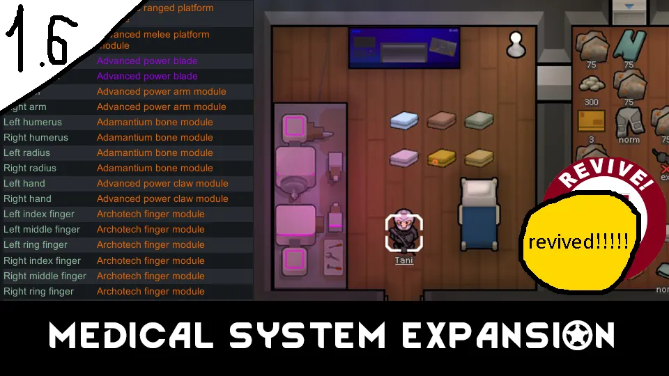 A revial of the [url=https://steamcommunity.com/sharedfiles/filedetails/?id=2006968859]Medical System Expansion - Revived[/url] mod. While the original mod devs have moved on to create [url=https://steamcommunity.com/sharedfiles/filedetails/?id=2056706586]MSE 2[/url], I stayed with the older version mentioned earlier due to MSE 2 not having the same bionic parts that MSE 1 added as well as generally wanting to remain stagnant and not move on with the times.