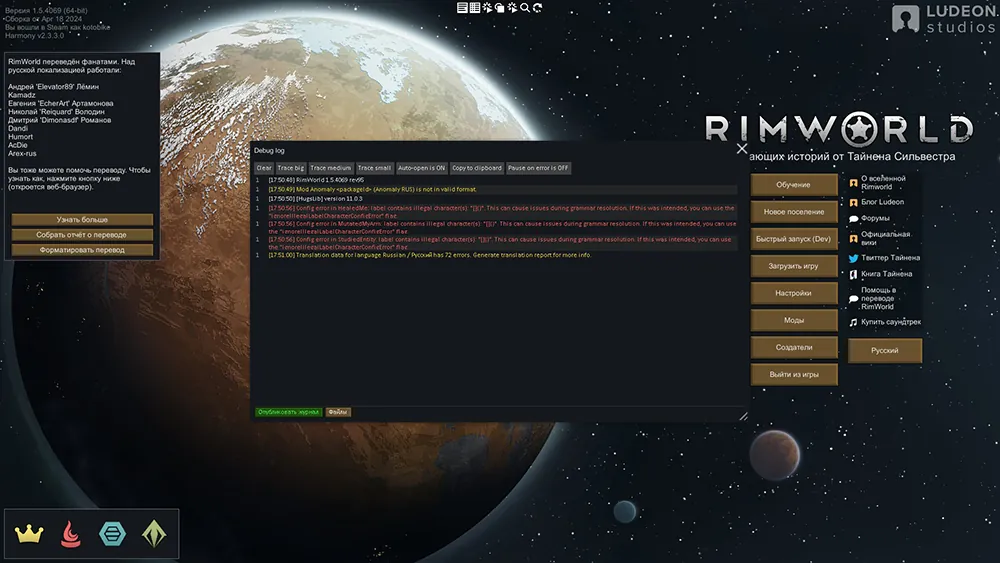 Этот мод-фикс исправляющий красную ошибку в Русской локализации, которая появляется при загрузке игры в режиме разработчика