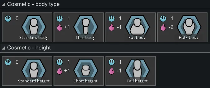 New height genes (short, standard, tall), with their own benefits and drawbacks.