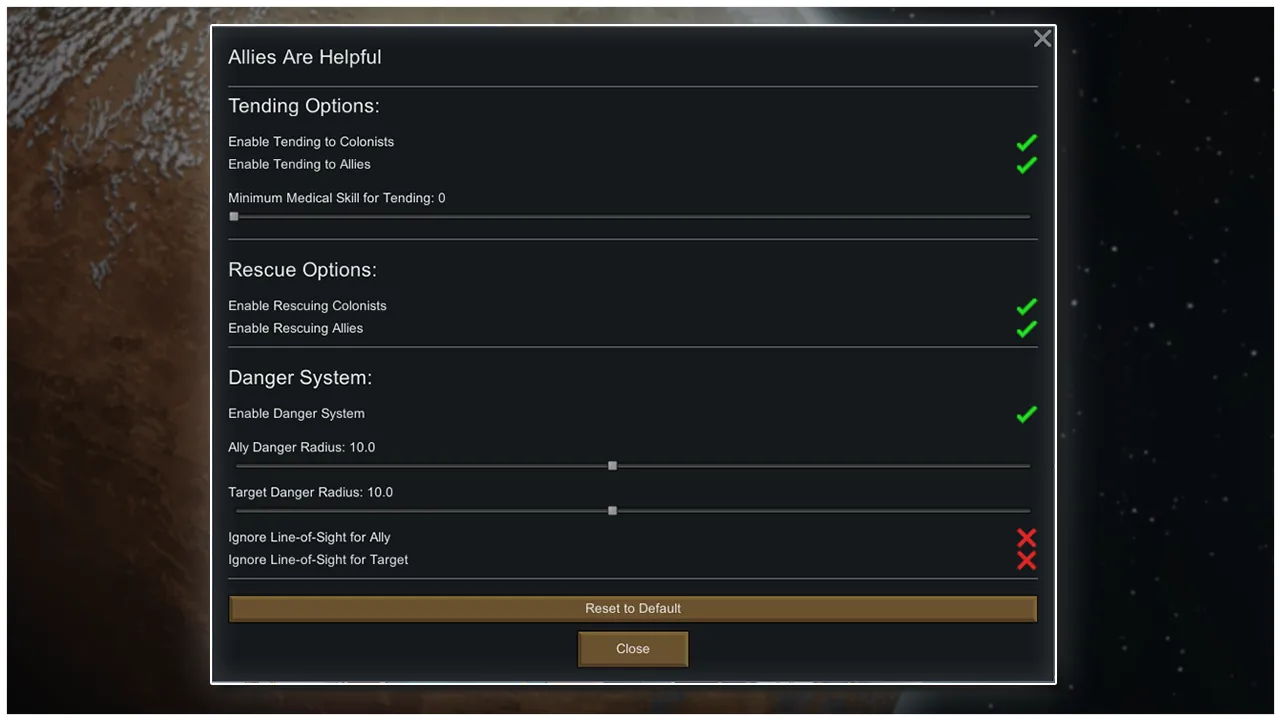 [*] Allies can provide medical care to colonists and other allied pawns on the field.