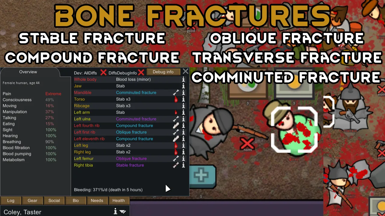 Want to watch those new bone fractures roll in during combat? Or surgically remove the vertebrae from an unruly colonist? Maybe human bones can be your colony's next big export?!