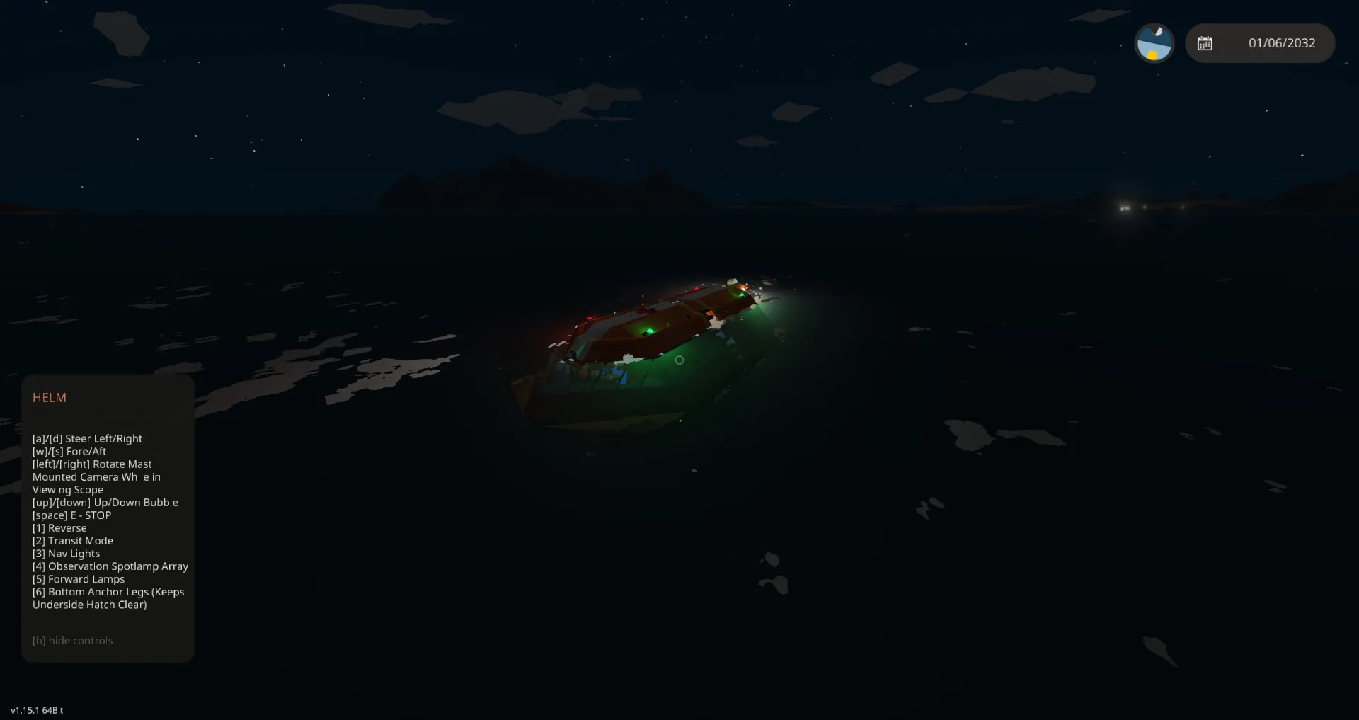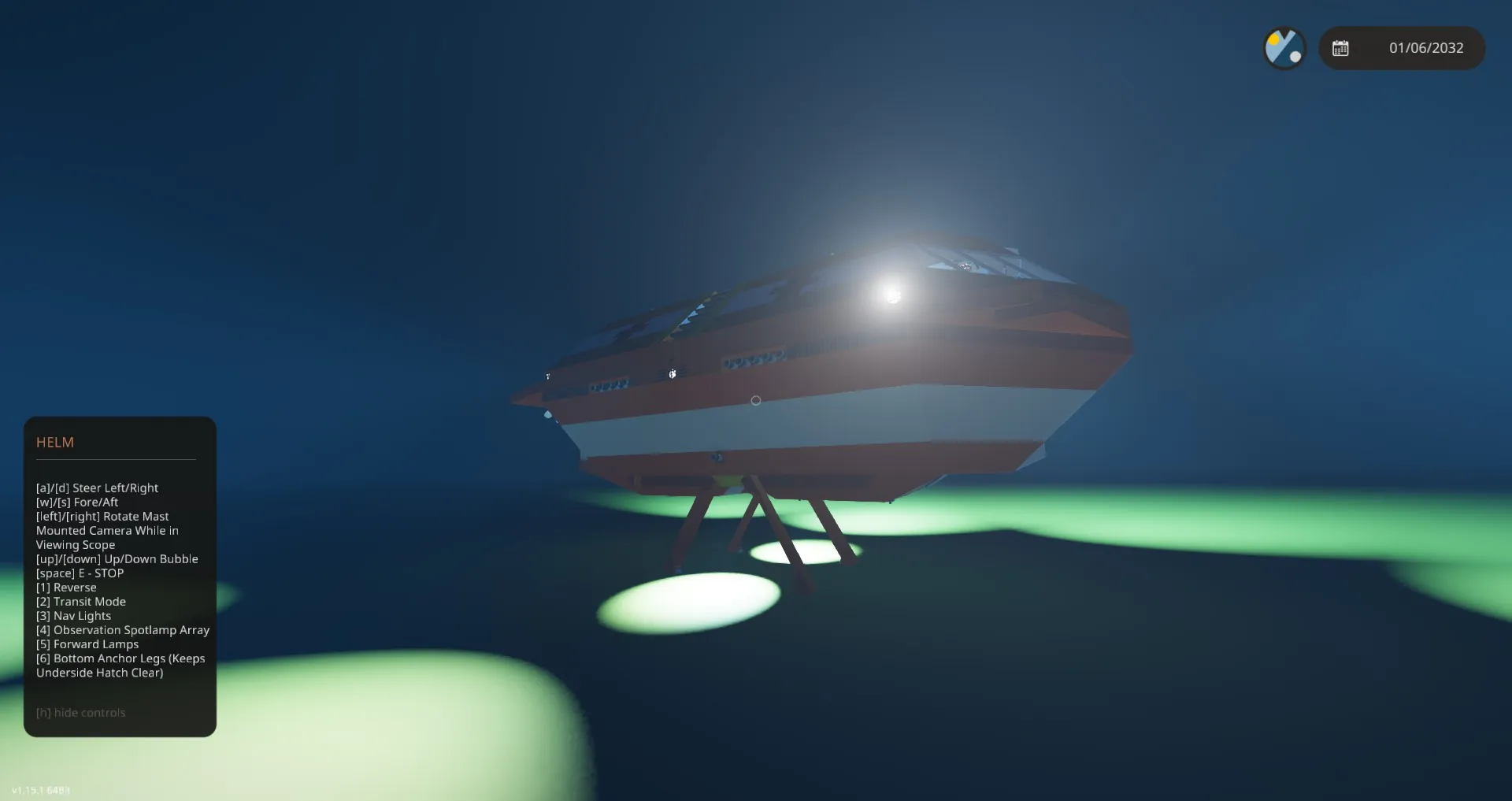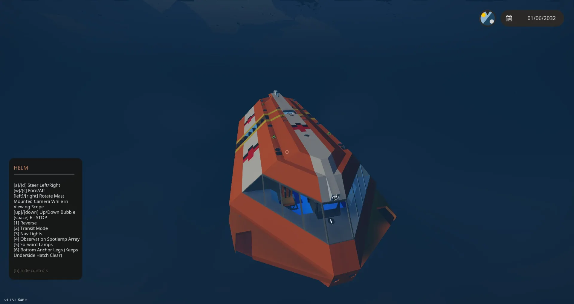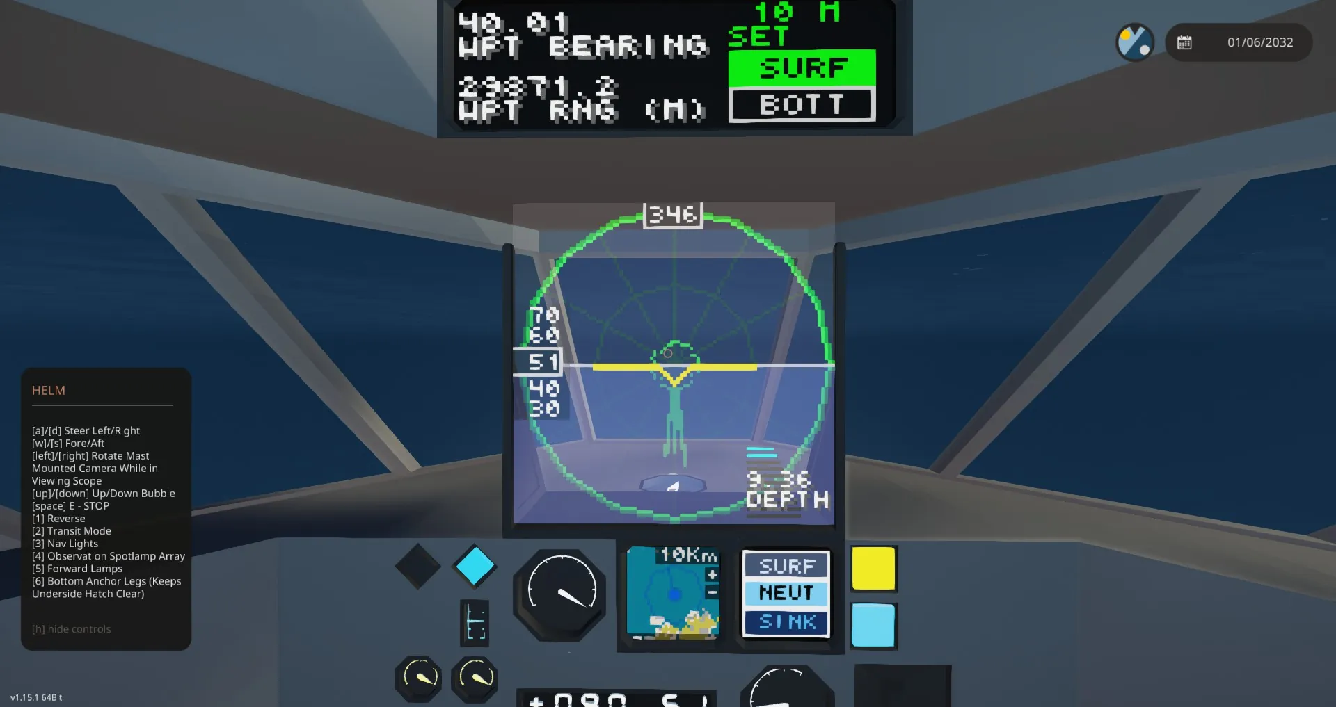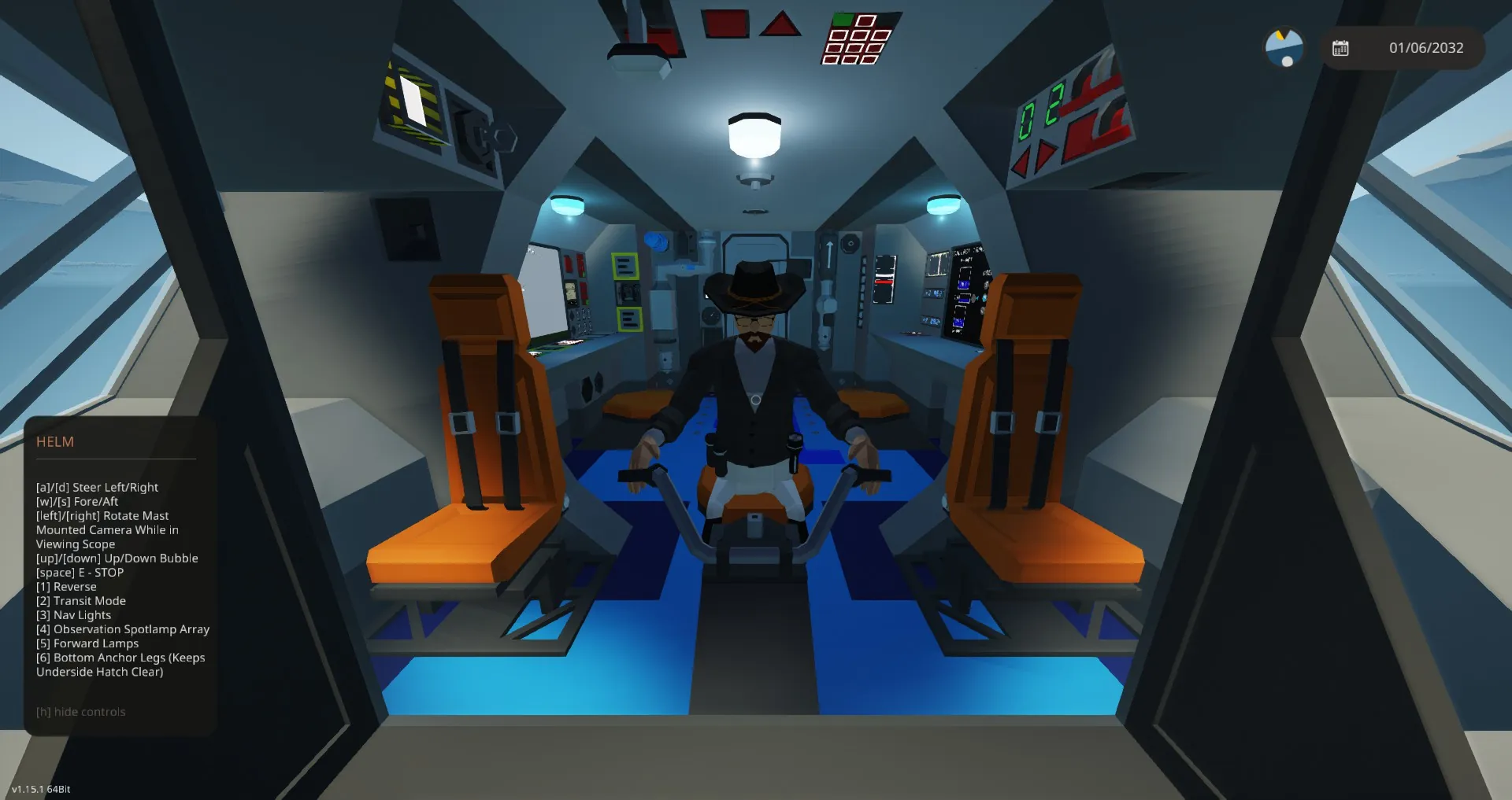 - Our usual C.E.S. styled simplified control system for ease of use. IE, no need for large crews. One person can operate the sub's critical systems from the helm with ease.