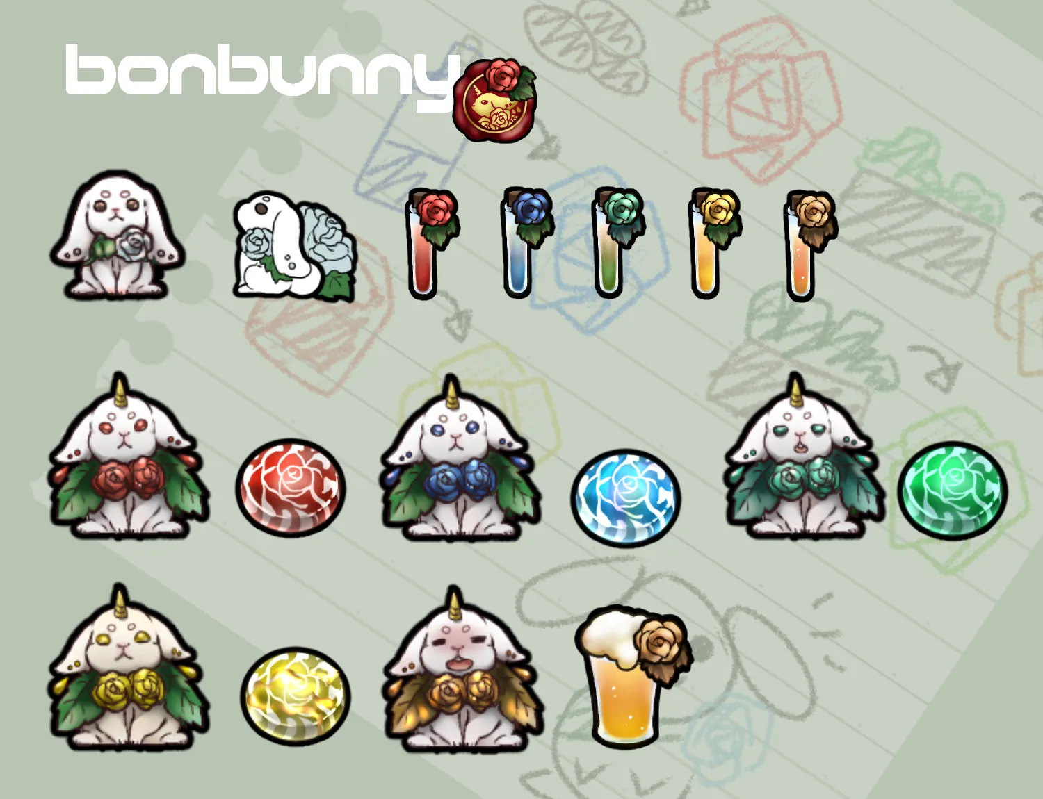 白い子ウサギは様々な種類のボンバニーへと変化できます。