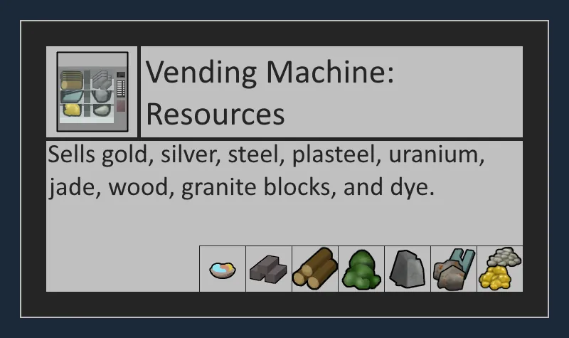 This mod adds a magically appearing vending machine and matching tokens. While the tokens are for spending at the machine, they can be used as nearly any given type of stuff for stuffable buildings and are edible.