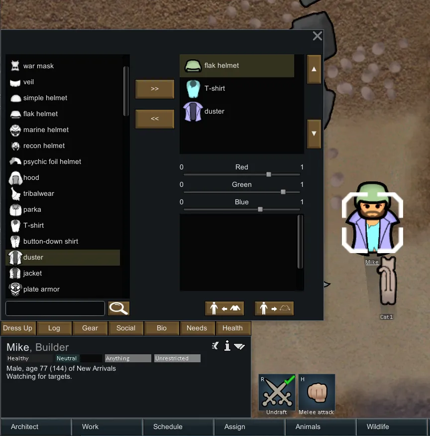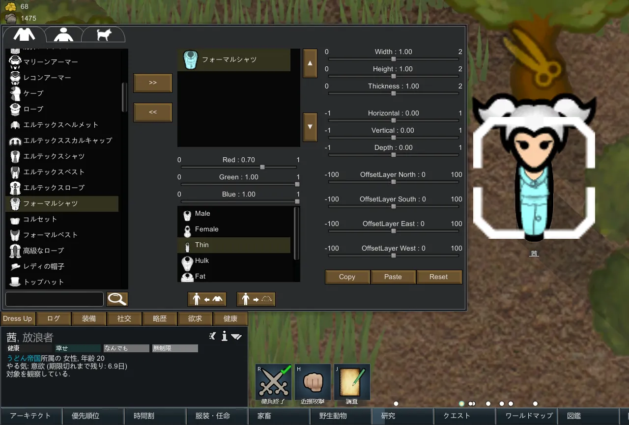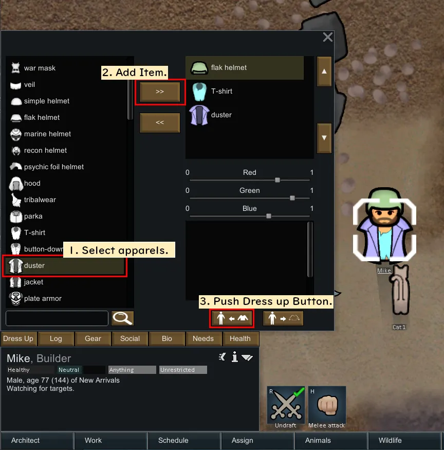 3) Then change the color and size of each garment and press the Dress Up button to change the settler's appearance.