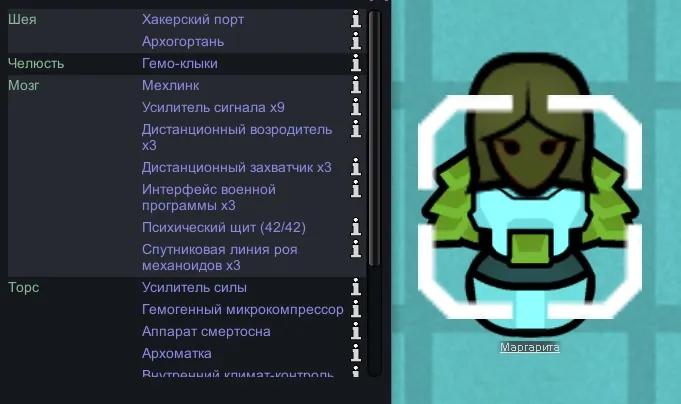 Оригинальный мод: [url=https://steamcommunity.com/sharedfiles/filedetails/?id=3223443793] Integrated Implants [/url] от [url=https://steamcommunity.com/profiles/76561198118351158] LTS [/url]
