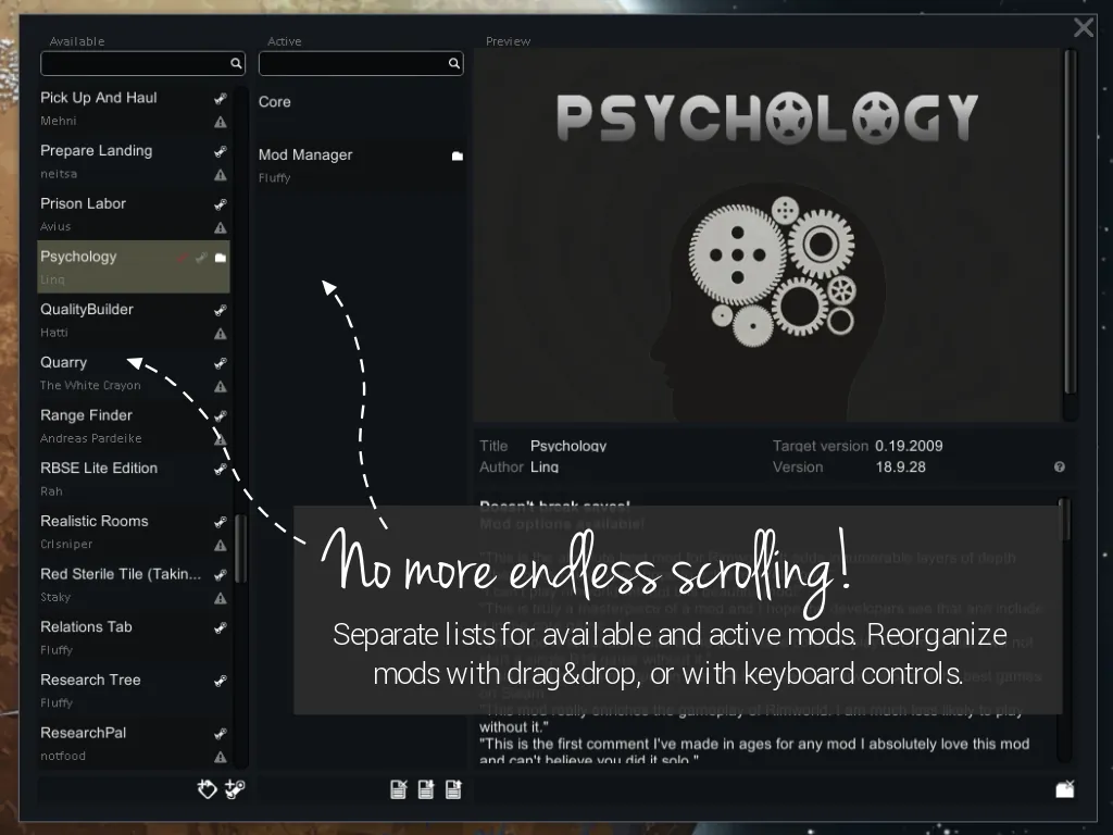 [*] separate lists for available and active mods