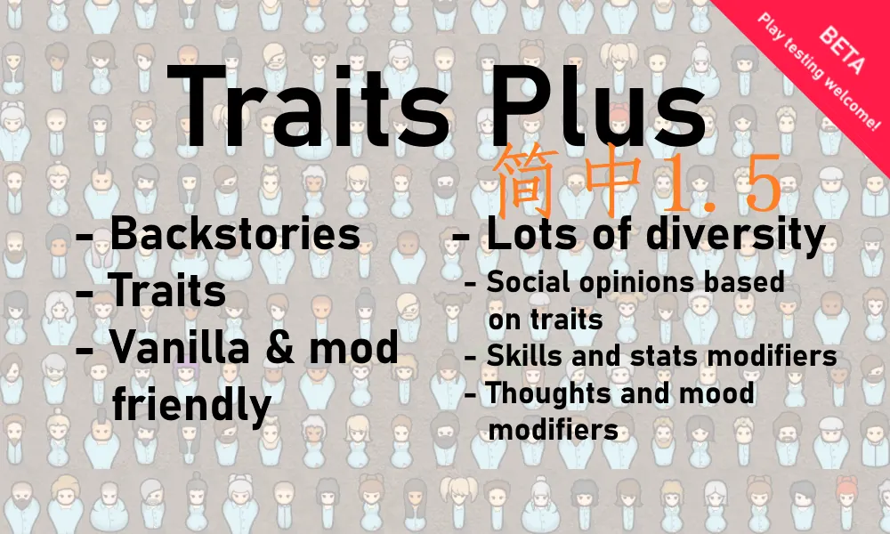 注:由于原mod本身存在一定文本描述和游戏实际内容有些许不符的情况,所以本汉化以特性在游戏内产生的实际效果为主要参照,并且进行了一定的“添油加醋”,但是大体不离mod特性的原本描述,为的也是让这些特性能够赋予小人更多的性格特征,毕竟这游戏是个“故事生成器”(高血压模拟器